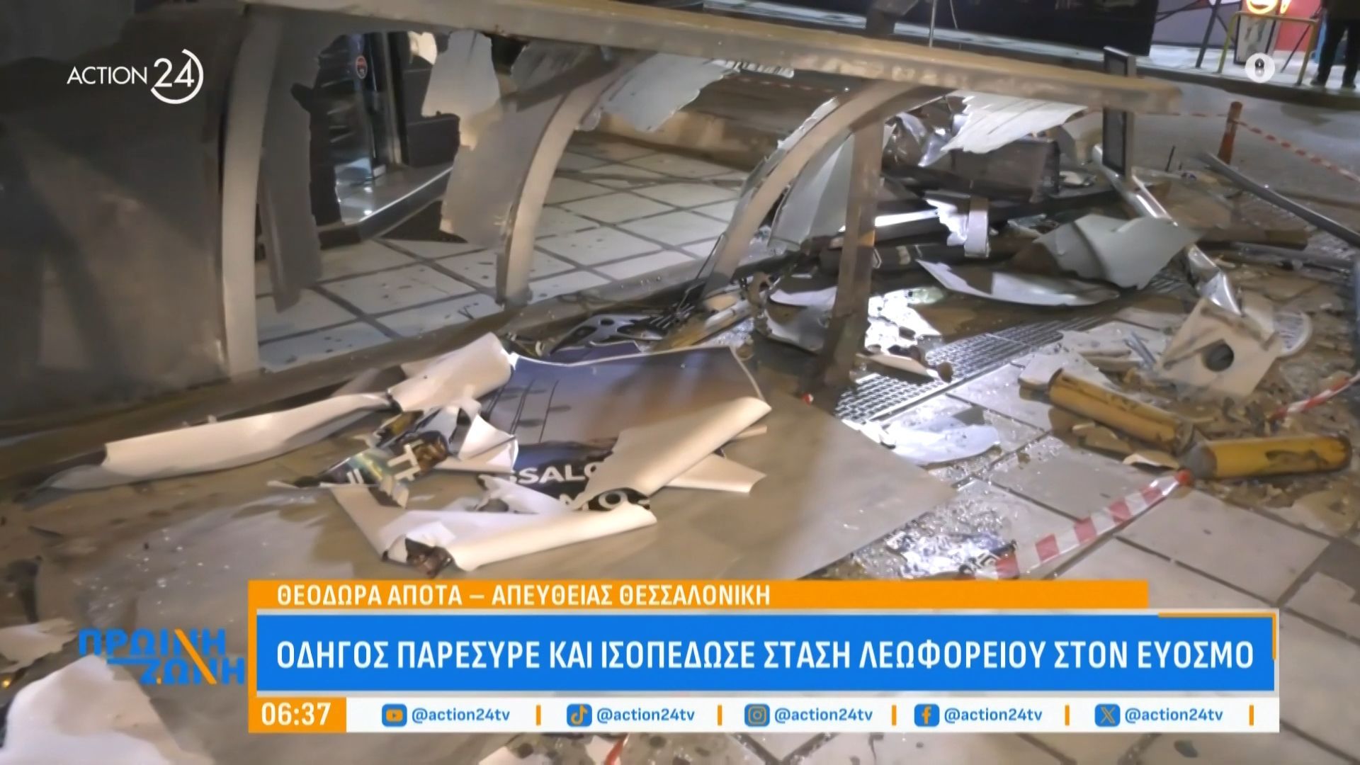 24χρονη οδηγός προκάλεσε σοβαρή καταστροφή σε στάση λεωφορείου στον Εύοσμο χωρίς ανθρώπινα θύματα