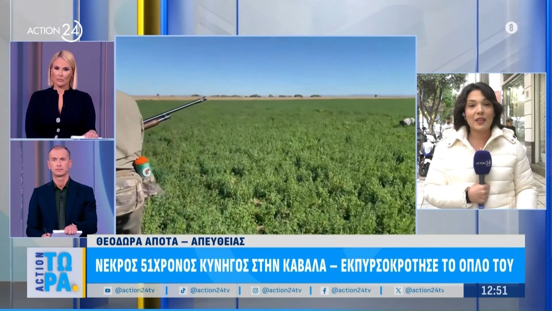 Ένας 51χρονος άνδρας στην Καβάλα έχασε τη ζωή του από εκπυρσοκρότηση του όπλου του. Το περιστατικό σημειώθηκε κατά τη διάρκεια του καθαρισμού του όπλου, με αποτέλεσμα τον θανάσιμο τραυματισμό του.