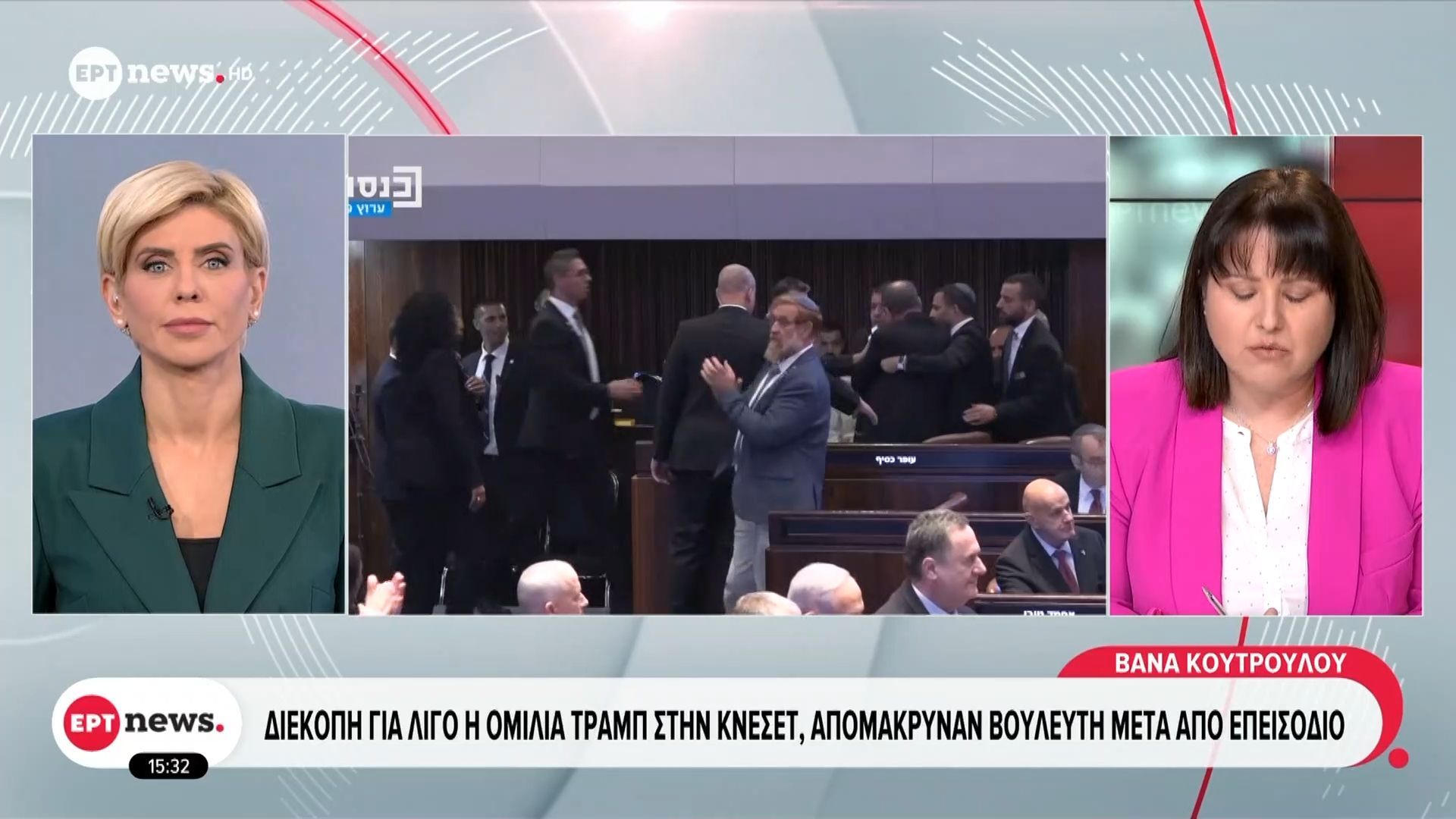 Η ομιλία του πρώην προεδρού Τραμπ στην Κνεσέτ διακόπηκε αιφνίδια όταν ένας βουλευτής προέβη σε διαμαρτυρία, προκαλώντας αναστάτωση στην αίθουσα. Οι δυνάμεις ασφάλειας αντέδρασαν άμεσα και απομάκρυναν τον βουλευτή, αποκαθιστώντας την τάξη και επιτρέποντας τη συνέχεια της εκδήλωσης.