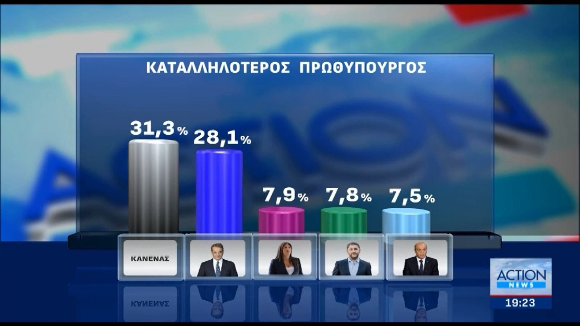 Σύμφωνα με την τελευταία δημοσκόπηση της Opinion Poll, ο Κυριάκος Μητσοτάκης διατηρεί σημαντική διαφορά 20 μονάδων από τον δεύτερο υποψήφιο στην καταλληλότητα για πρωθυπουργός. Αυτή η εξέλιξη ενισχύει τη θέση του προέδρου της Νέας Δημοκρατίας ενόψει των επικείμενων εκλογών.