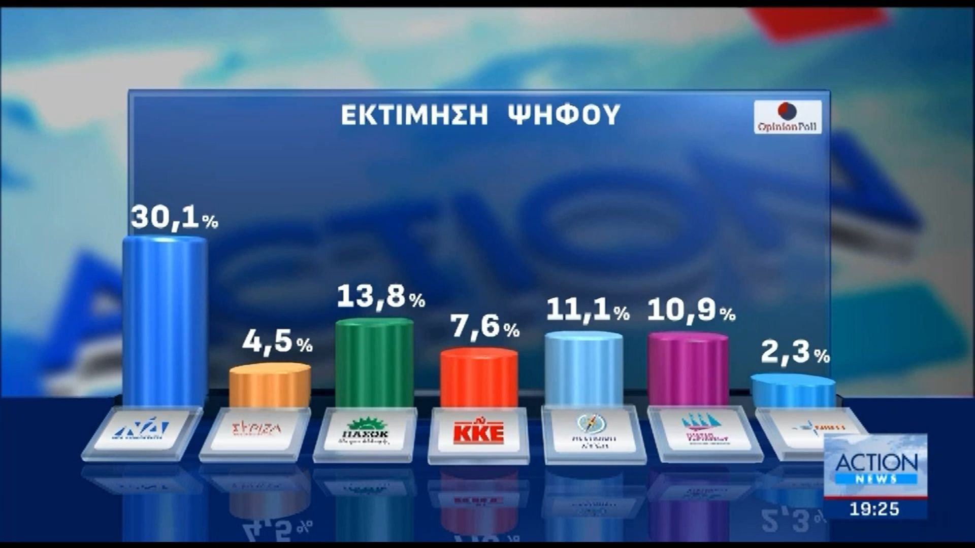 Η τελευταία δημοσκόπηση της Opinion Poll καταγράφει την κυριαρχία της Νέας Δημοκρατίας με ποσοστό 30,1%, διατηρώντας μια σημαντική διαφορά από τους υπόλοιπους πολιτικούς σχηματισμούς. Η Ελληνική Λύση παραμένει σταθερά ψηλά στις προτιμήσεις του εκλογικού σώματος, δείχνοντας ικανοποιητική απήχηση.