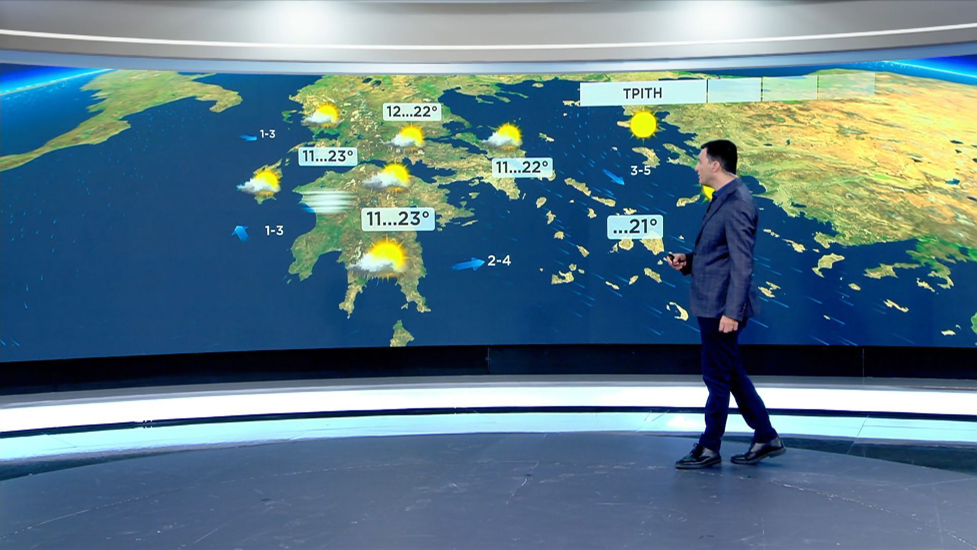 Παρά τις ηλιόλουστες συνθήκες, υπάρχουν πιθανότητες για τοπικές βροχοπτώσεις σε ορεινές περιοχές κατά τις απογευματινές ώρες. Οι άνεμοι θα πνέουν σε μέτριες εντάσεις, προσφέροντας μια ευχάριστη αίσθηση δροσιάς.