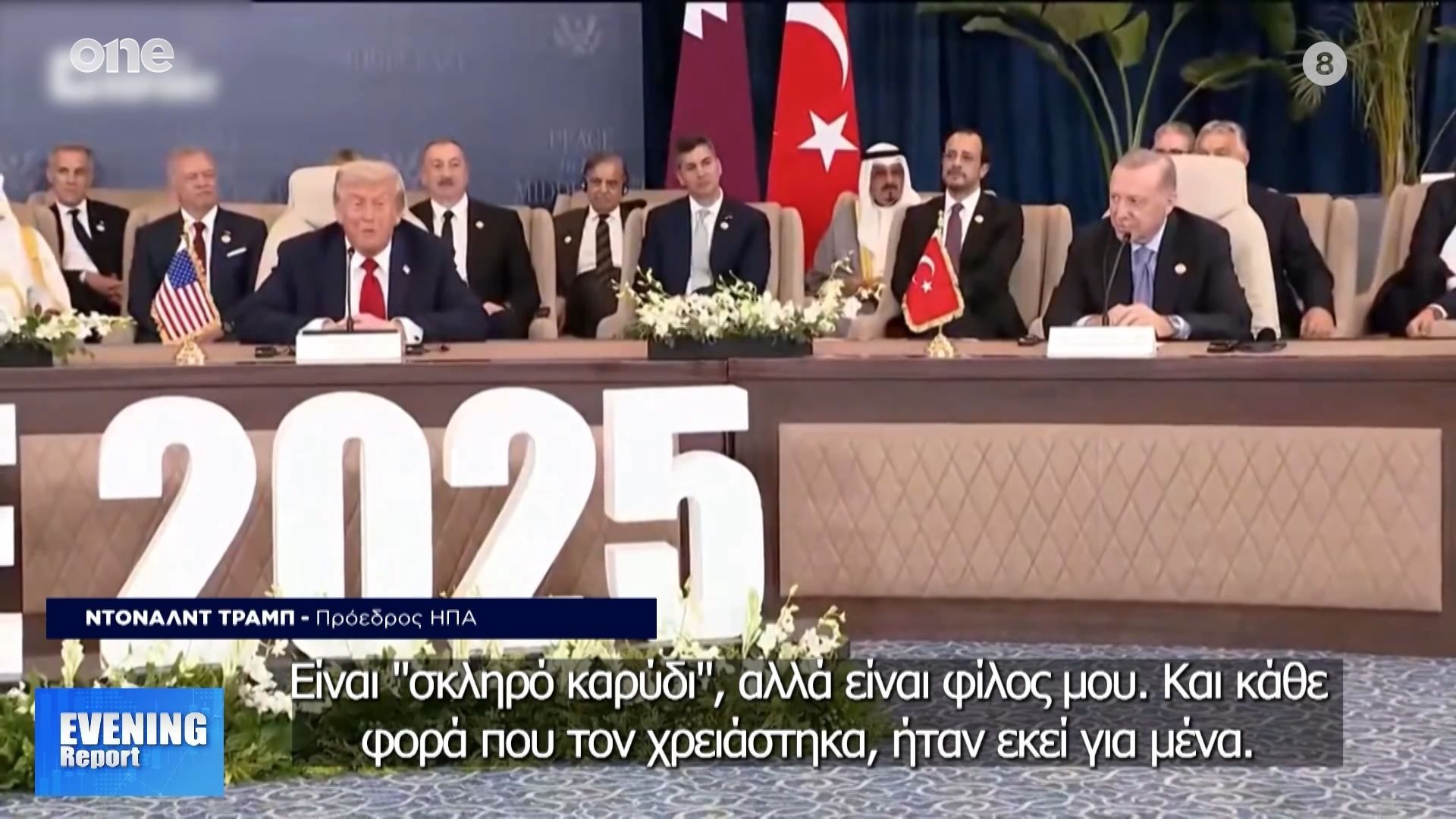 Κατά τη διάρκεια της Ειρηνευτικής Συμφωνίας για τη Γάζα που υπεγράφη στην Αίγυπτο, ο Ντόναλντ Τραμπ εξέφρασε την εκτίμησή του για τον Ρετζέπ Ταγίπ Ερντογάν, χαρακτηρίζοντάς τον ως έναν ηγέτη με μεγαλύτερη δύναμη από αυτή που συνήθως αποκαλύπτει. Ο Τραμπ τόνισε τη σημασία της συνεργασίας μεταξύ των δύο ηγετών για την επίτευξη διαρκούς ειρήνης στην περιοχή.