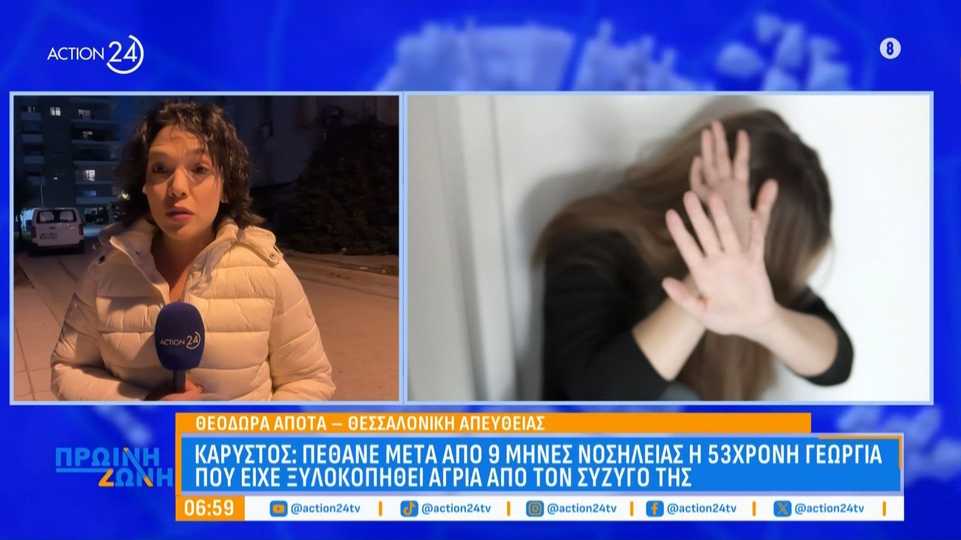 Η 53χρονη Γεωργία, που είχε υποστεί σοβαρούς τραυματισμούς από ξυλοδαρμό από τον σύζυγό της, κατέληξε μετά από 9 μήνες νοσηλείας. Η υπόθεση είχε προκαλέσει σοκ στην τοπική κοινωνία και είχε αναδείξει τα ζητήματα της ενδοοικογενειακής βίας.