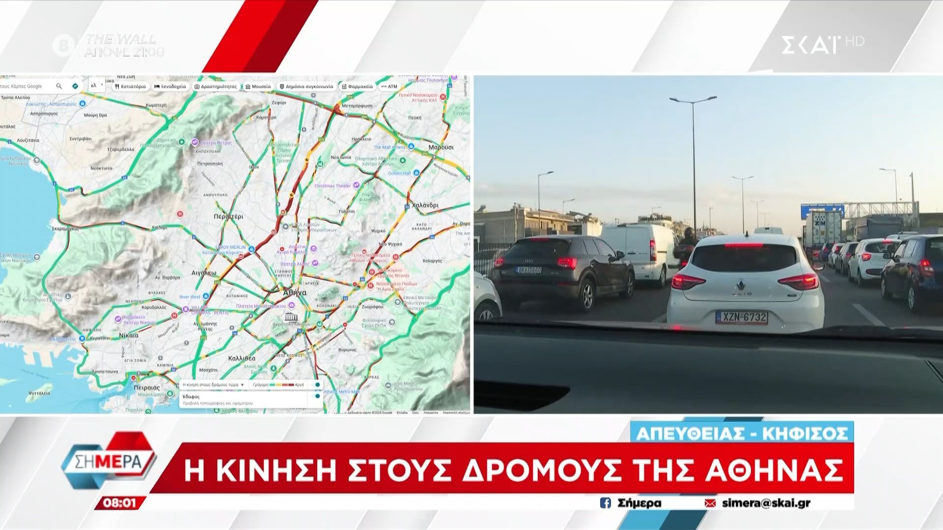 Σημαντική επιβάρυνση παρατηρείται στους δρόμους της Αττικής, με τον Κηφισό να αποτελεί το κεντρικό σημείο της κυκλοφοριακής συμφόρησης. Η απεργία που έχει προκηρυχθεί από εργαζόμενους σε δημόσιες συγκοινωνίες έχει επιδεινώσει την κατάσταση, αναγκάζοντας πολλούς οδηγούς να στραφούν σε εναλλακτικές διαδρομές.