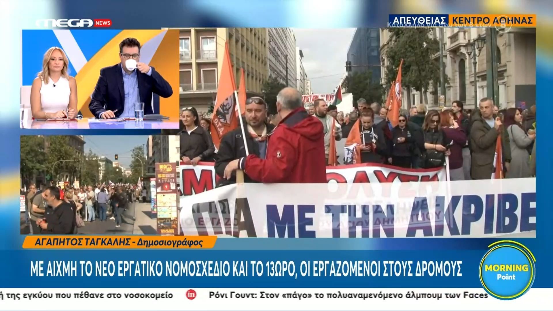 Δεκάδες εργαζόμενοι συγκεντρώθηκαν στους δρόμους, διαμαρτυρόμενοι για το νέο νομοσχέδιο που προτείνει τη θέσπιση 13ωρης εργασίας. Οι συμμετέχοντες φωνάζουν συνθήματα και κρατούν πλακάτ, εκφράζοντας την ανησυχία τους για τις επιπτώσεις της ρύθμισης στην καθημερινότητά τους και την ποιότητα ζωής τους.