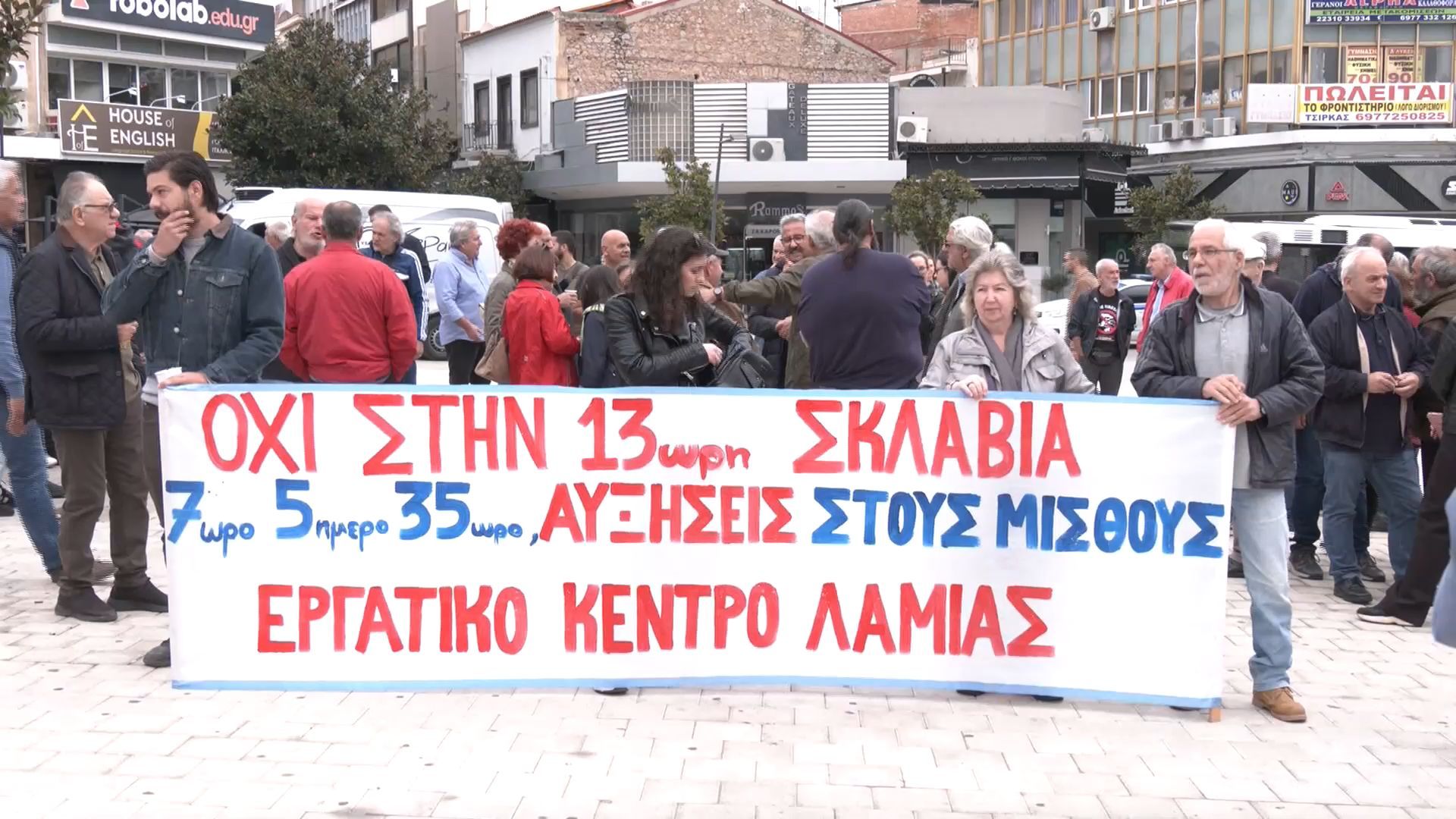 Με συμμετοχή πλήθους κόσμου, το Εργατικό Κέντρο Λαμίας πραγματοποίησε απεργιακή συγκέντρωση στην πλατεία Πάρκου. Οι διαδηλωτές φώναξαν συνθήματα κατά του υπό συζήτηση εργασιακού νομοσχεδίου, απαιτώντας 7ωρο, 5ήμερο και αυξήσεις στους μισθούς.