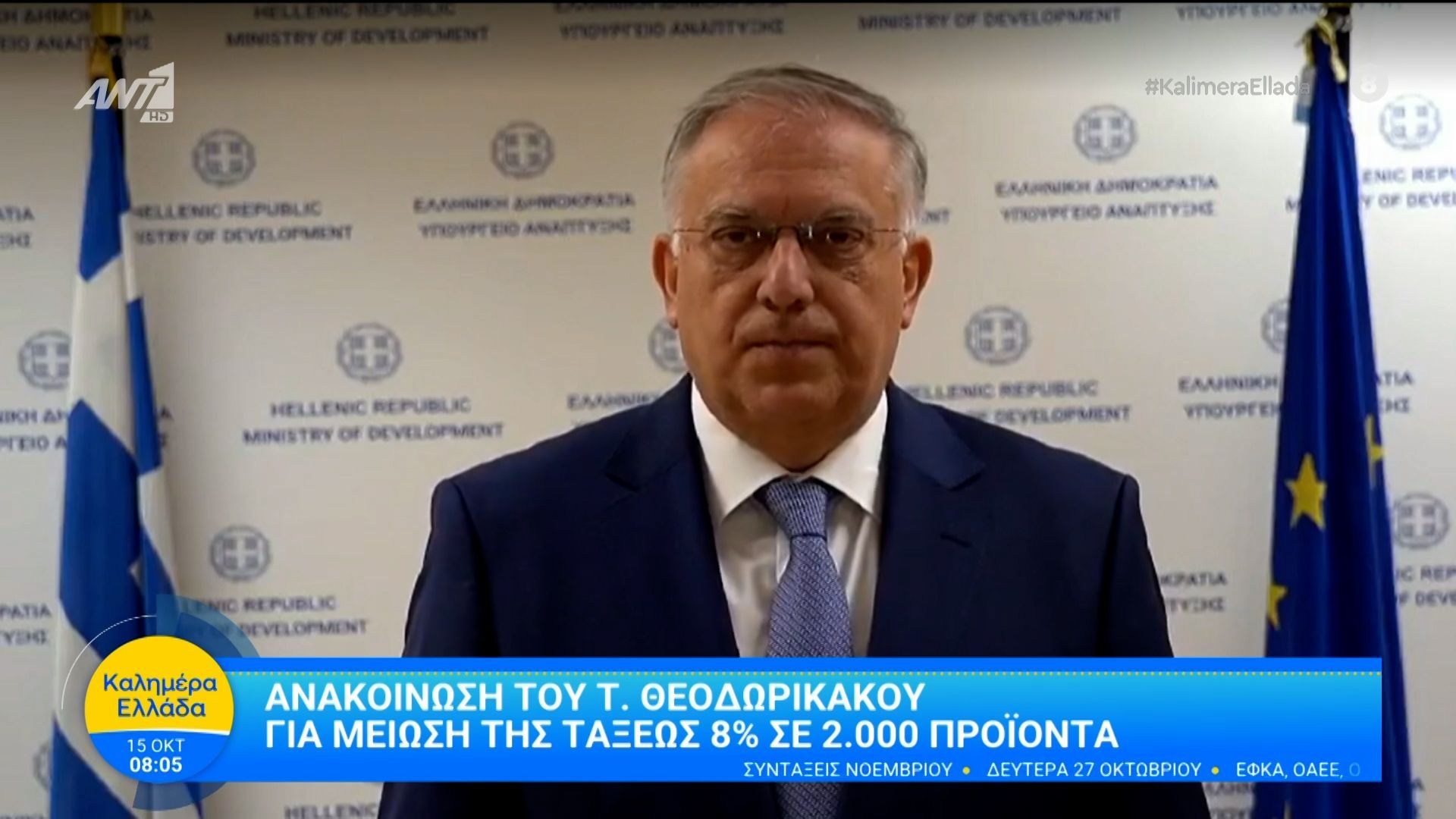 Ανακοίνωση του Τ. Θεοδωρικάκου για μείωση της τάξεως 8% σε 2.000 προϊόντα – Καλημέρα Ελλάδα – 15/10/2025