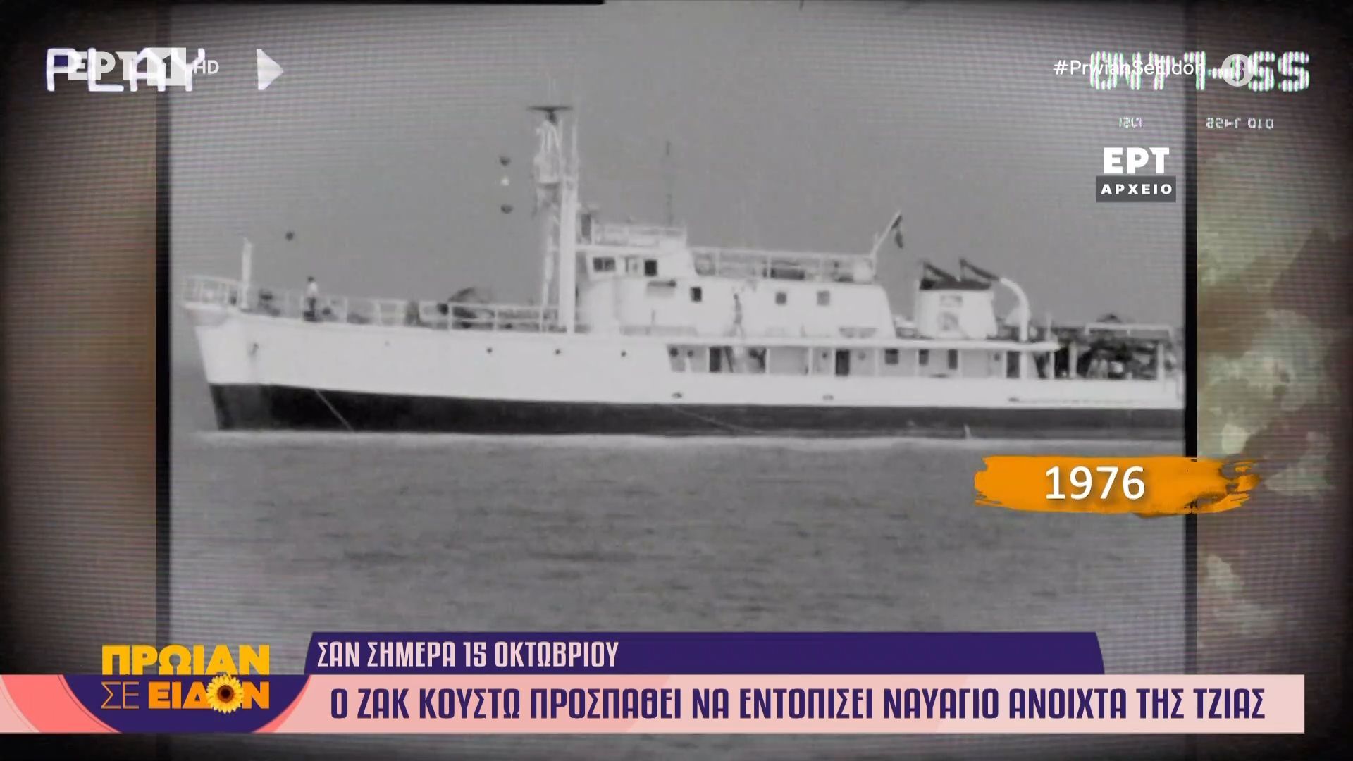 Στις 15 Οκτωβρίου 1976, ο διάσημος Γάλλος εξερευνητής και ωκεανογράφος Ζακ Κουστώ επιχείρησε να εντοπίσει ένα ιστορικό ναυάγιο ανοιχτά της Τζιάς. Η αποστολή του είχε ως στόχο την ανακάλυψη και μελέτη των υπολειμμάτων του πλοίου, που είχε βυθιστεί σε προηγούμενες δεκαετίες, αποκαλύπτοντας πολύτιμες πληροφορίες για την ναυτική ιστορία της περιοχής.