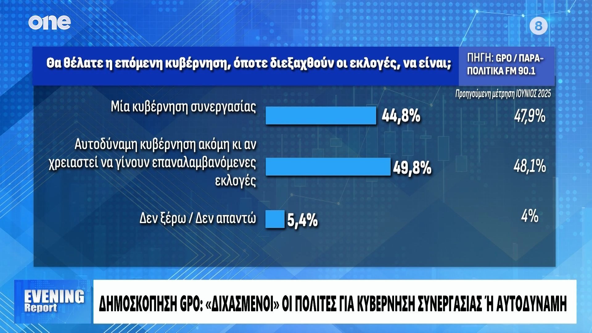 Δημοσκόπηση GPO: Κυβέρνηση συνεργασίας θέλει το 44,8% – Πρόσωπο κοινής αποδοχής για πρωθυπουργό