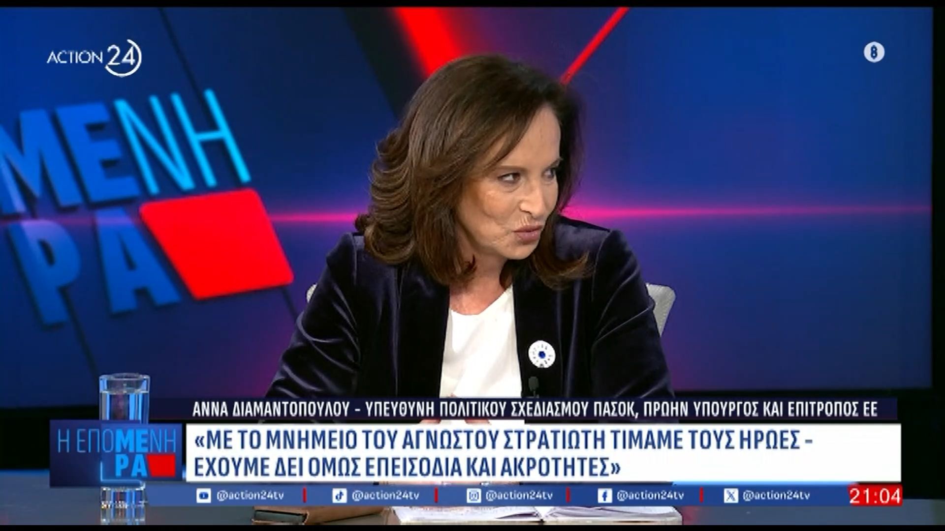 Η Άννα Διαμαντοπούλου εκφράζει τη διαφωνία της με την πρόσφατη απόφαση της κυβέρνησης να επιτρέψει διαδηλώσεις στο μνημείο του Αγνώστου Στρατιώτη. Θεωρεί ότι αυτό συνιστά σοβαρό λάθος, τονίζοντας την ανάγκη να διατηρηθεί ο ιερός χαρακτήρας του μνημείου και να προστατευθεί από πολιτικές αντιπαραθέσεις.