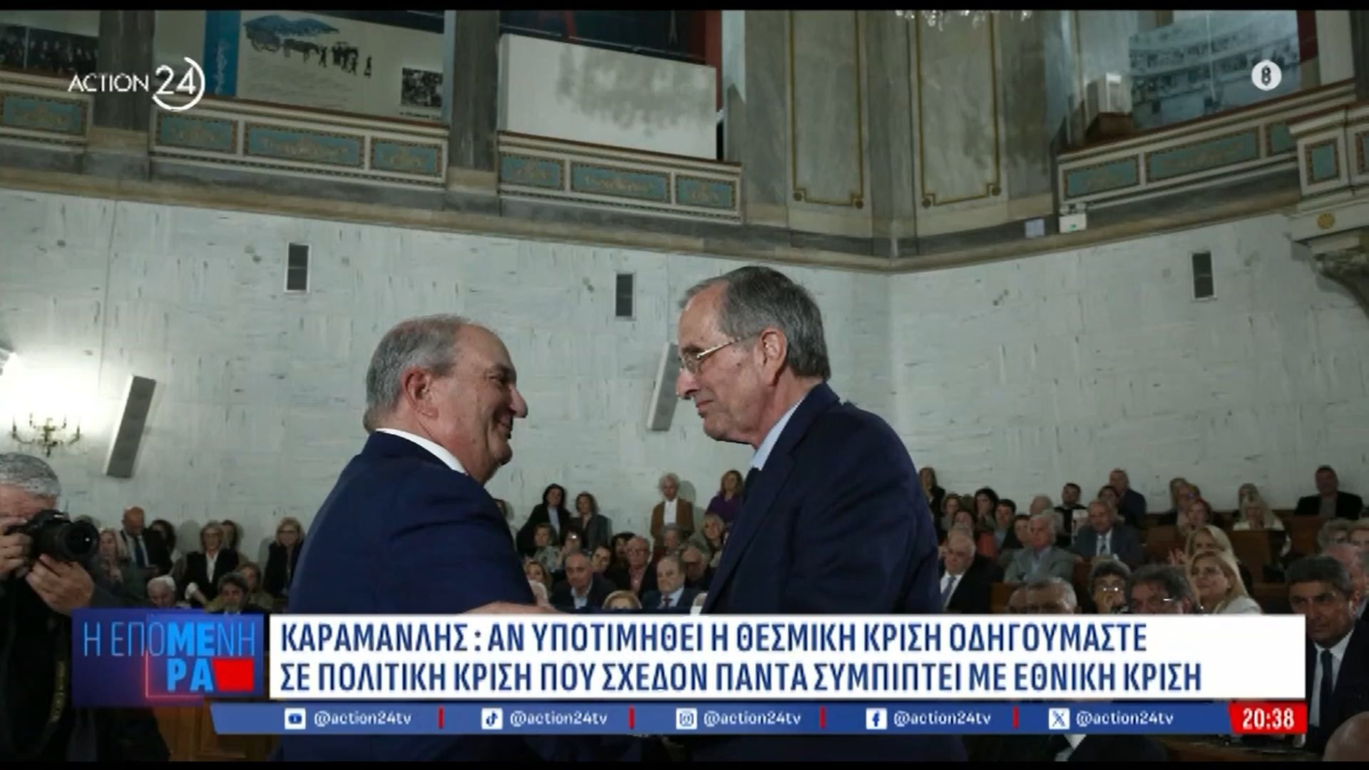 Η συνάντηση του πρώην Πρωθυπουργού Κώστα Καραμανλή με τους Κυριάκο Μητσοτάκη και Αντώνη Σαμαρά αναδεικνύει τις διαφορετικές πολιτικές σχέσεις και προσεγγίσεις που έχουν αναπτυχθεί μεταξύ τους. Οι χειραψίες τους, με τις ιδιαίτερες εκφράσεις και στάσεις, προσφέρουν μια ματιά στις δυναμικές του πολιτικού σκηνικού και τις προσωπικές τους σχέσεις.