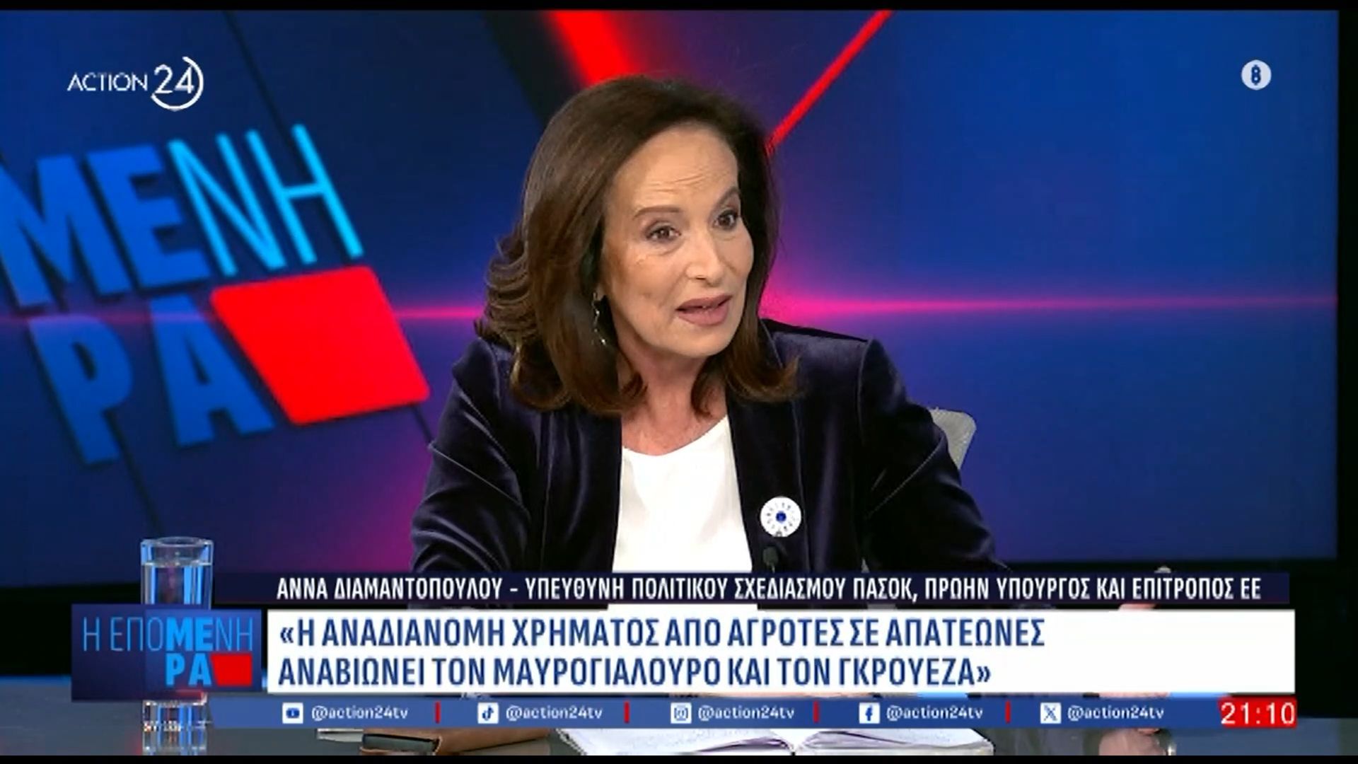 Η Άννα Διαμαντοπούλου, σε πρόσφατη συνέντευξή της, τόνισε την ανάγκη για ουσιαστική συζήτηση σχετικά με το πρόγραμμα του ΠΑΣΟΚ. Υπογράμμισε ότι η τρέχουσα κατάσταση των δημοσκοπήσεων δεν είναι ικανοποιητική και απαιτείται ανασυγκρότηση και στρατηγικός σχεδιασμός.