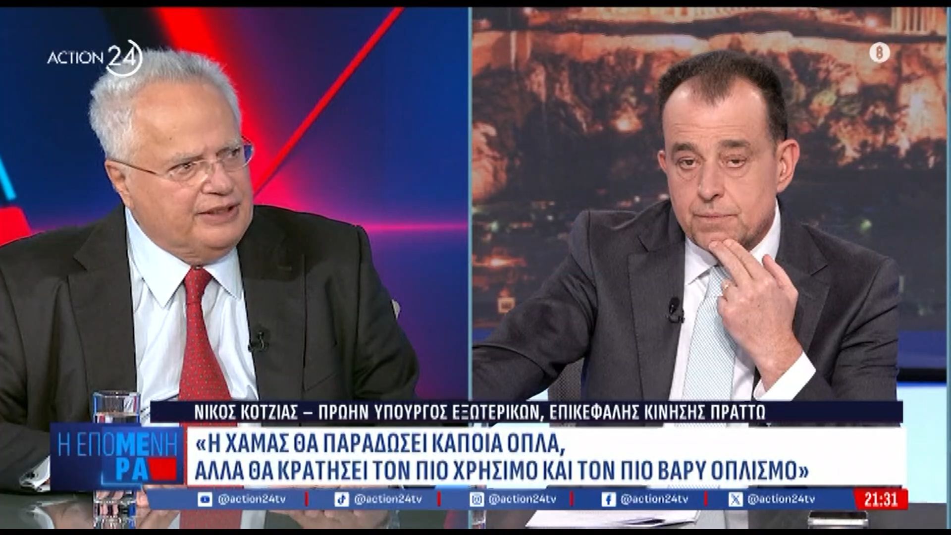 Επιπλέον, αναφέρει ότι η Χαμάς θα παραδώσει κάποια όπλα στο πλαίσιο διαπραγματεύσεων, γεγονός που ενδέχεται να επηρεάσει την ισορροπία δυνάμεων. Η συζήτηση εστιάζει στις προοπτικές ειρηνικής επίλυσης και τις προκλήσεις που αντιμετωπίζει η διεθνής κοινότητα στην προσπάθεια για σταθερότητα.