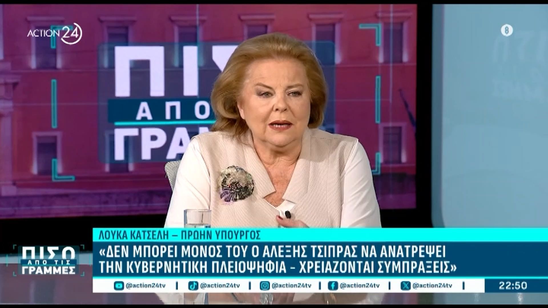 Η Λούκα Κατσέλη, πρώην Υπουργός, εξέφρασε την άποψή της σχετικά με τις πολιτικές προοπτικές του Αλέξη Τσίπρα και την πιθανότητα δημιουργίας νέου κόμματος. Σύμφωνα με την Κατσέλη, η ανατροπή της κυβερνητικής πλειοψηφίας δεν μπορεί να επιτευχθεί από τον Τσίπρα μόνος του, αλλά απαιτεί συνεργασία με άλλες πολιτικές δυνάμεις.