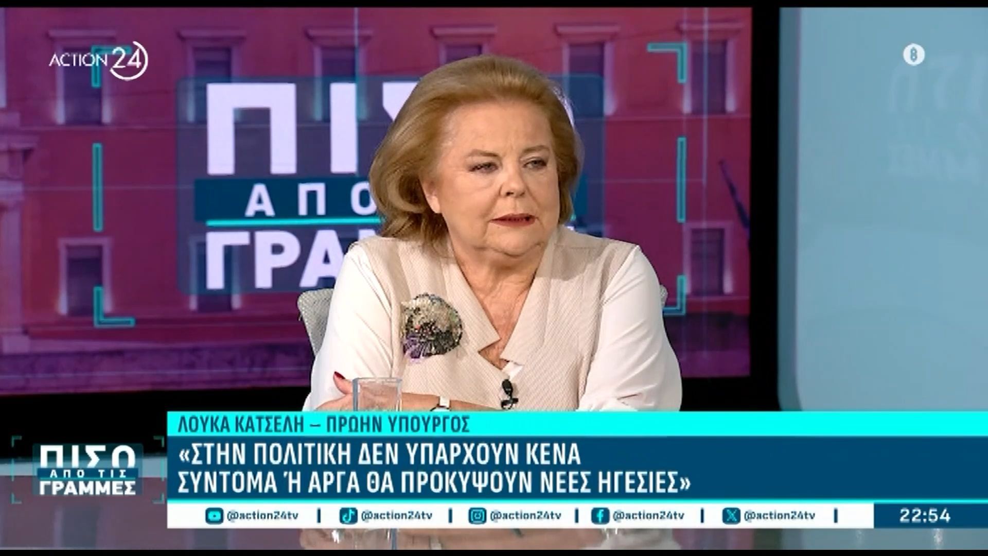 Η πρώην Υπουργός Λούκα Κατσέλη αναλύει τις εξελίξεις που θα διαμορφώσουν το πολιτικό τοπίο της χώρας. Υπογραμμίζει ότι η πολιτική δεν επιτρέπει κενά και ότι νέες ηγεσίες θα αναδυθούν, είτε άμεσα είτε σε βάθος χρόνου.