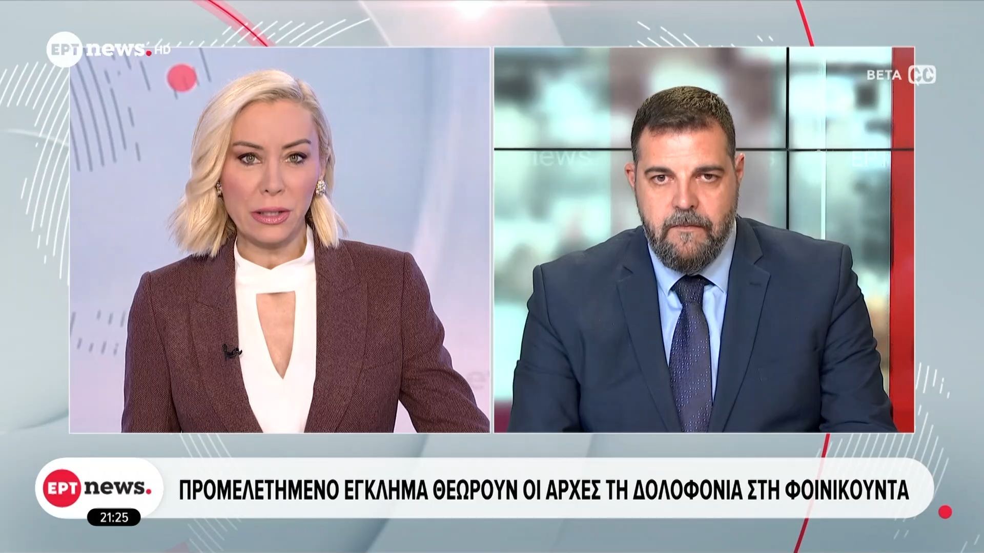 Οι αρχές ερευνούν τη δολοφονία που σημειώθηκε στη Φοινικούντα, την οποία χαρακτηρίζουν ως προμελετημένο έγκλημα. Σύμφωνα με τις πρώτες πληροφορίες, το θύμα εντοπίστηκε σε δημόσιο χώρο, με εμφανή τραύματα, ενώ οι αστυνομικές αρχές έχουν ήδη ξεκινήσει έρευνες για τον εντοπισμό των δραστών.
