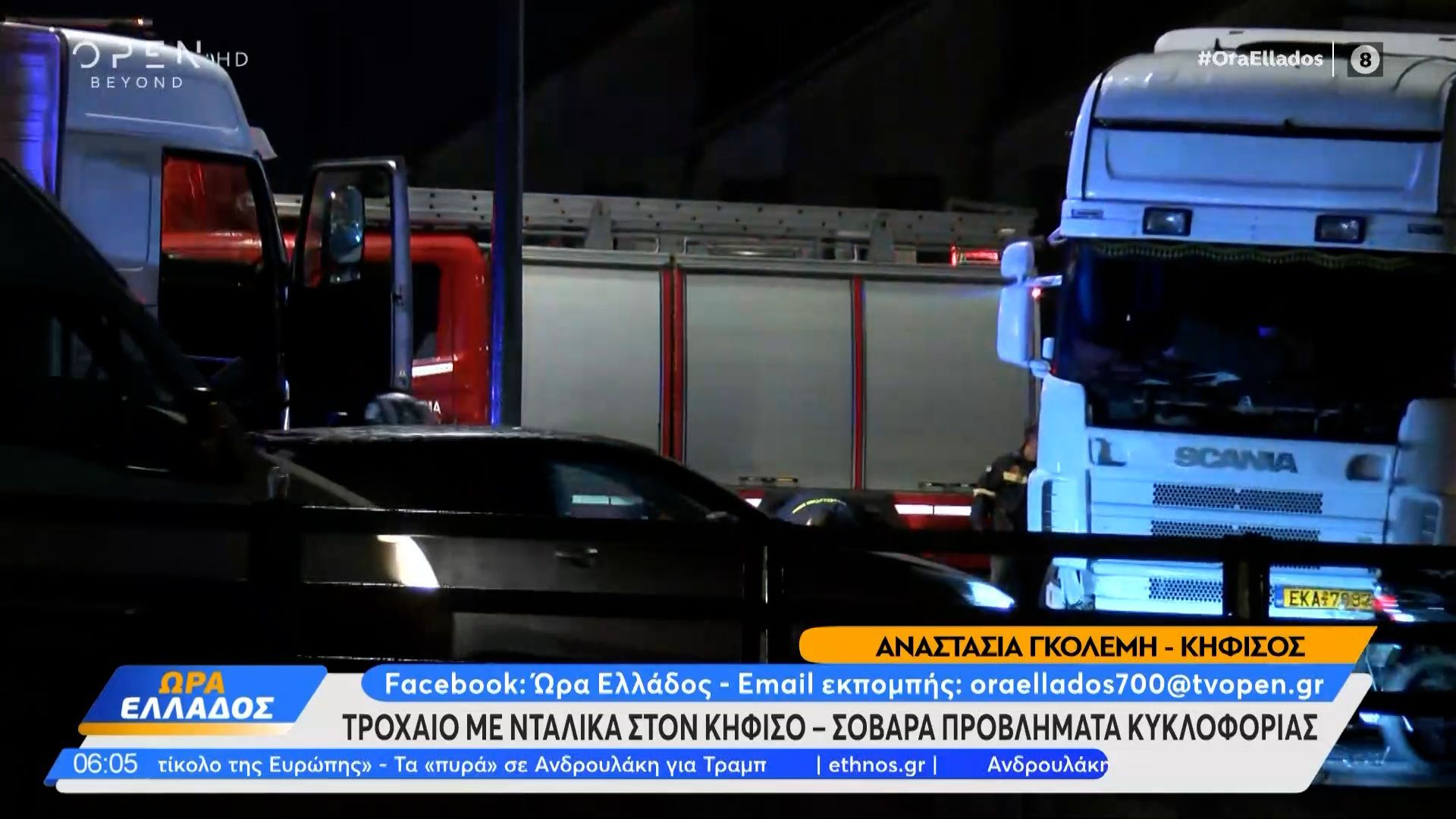 Τροχαίο ατύχημα σημειώθηκε νωρίς το πρωί της Παρασκευής όταν ο οδηγός νταλίκας, κινούμενος στη λεωφόρο Κηφισού προς Πειραιά, έχασε τον έλεγχο του οχήματος. Η νταλίκα προσέκρουσε στις προστατευτικές μπάρες, προκαλώντας σοβαρές ζημιές και κυκλοφοριακή συμφόρηση στην περιοχή.