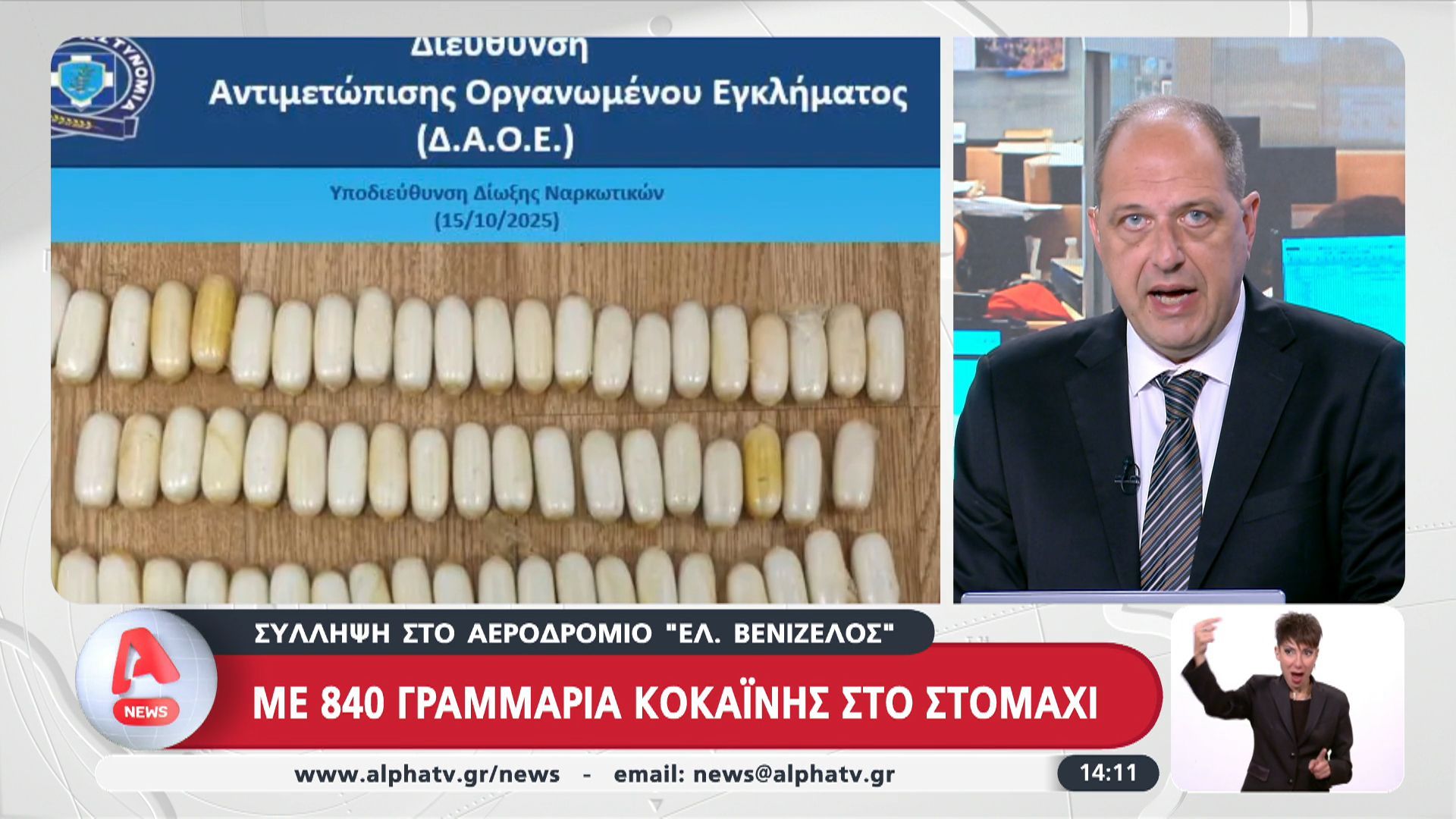 Στο Αεροδρόμιο Ελευθέριος Βενιζέλος συνελήφθη 22χρονος αλλοδαπός, μέλος διεθνούς εγκληματικής οργάνωσης, ο οποίος επιχείρησε να εισάγει στη χώρα πάνω από 800 γραμμάρια κοκαΐνης. Ο συλληφθείς είχε καταπιεί 72 αυτοσχέδιες ωοειδείς συσκευασίες γεμάτες με την απαγορευμένη ουσία.