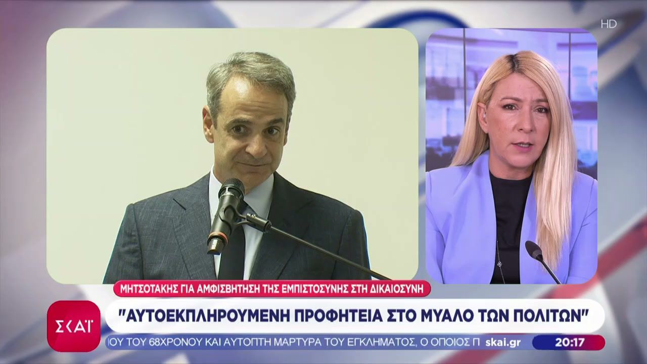 Ο Πρωθυπουργός αναφέρεται στην αυξανόμενη αμφισβήτηση της Δικαιοσύνης από την κοινωνία, τονίζοντας ότι η κατάσταση αυτή μπορεί να οδηγήσει σε μια αυτοεκπληρούμενη προφητεία. Σύμφωνα με τον ίδιο, η έλλειψη εμπιστοσύνης προς τους θεσμούς ενδέχεται να επηρεάσει αρνητικά την κοινωνία και την πολιτική σταθερότητα.