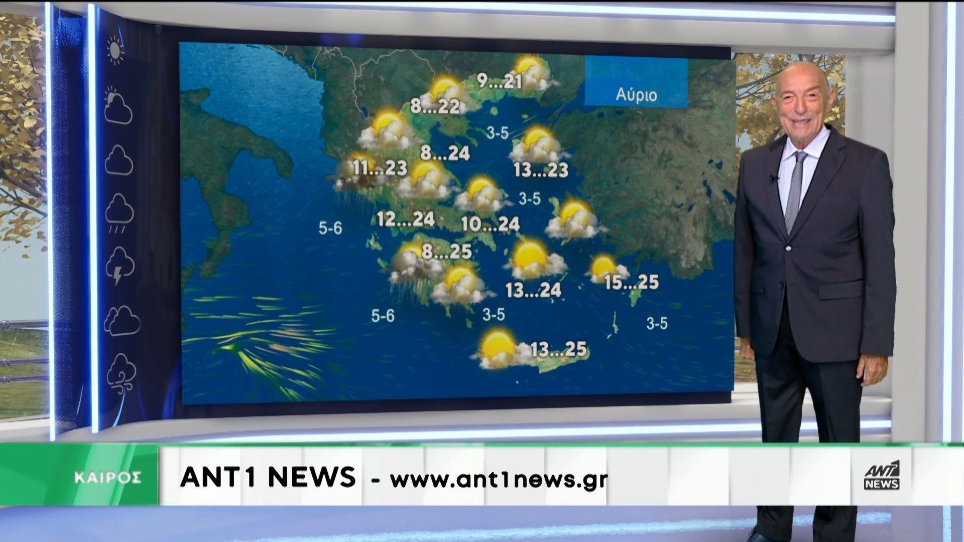 Σήμερα το μεσημέρι, ο Τάσος Αρνιακός θα μας παρουσιάσει την πρόγνωση του καιρού για τις επόμενες ημέρες. Αναμένονται μεταβολές στις καιρικές συνθήκες, με τοπικές βροχές και πτώση της θερμοκρασίας σε πολλές περιοχές της χώρας.