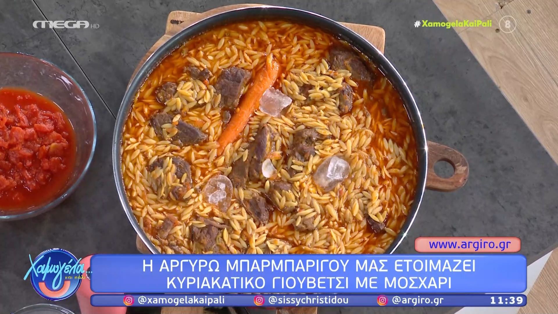 Η Αργυρώ Μπαρμπαρίγου παρουσιάζει μια παραδοσιακή συνταγή γιουβέτσι με μοσχάρι, ιδανική για Κυριακάτικο οικογενειακό γεύμα. Χρησιμοποιώντας φρέσκα υλικά, όπως μοσχάρι, λαχανικά και αρωματικά, δημιουργεί ένα πλούσιο και γευστικό πιάτο που θα ενθουσιάσει τους καλεσμένους σας.
