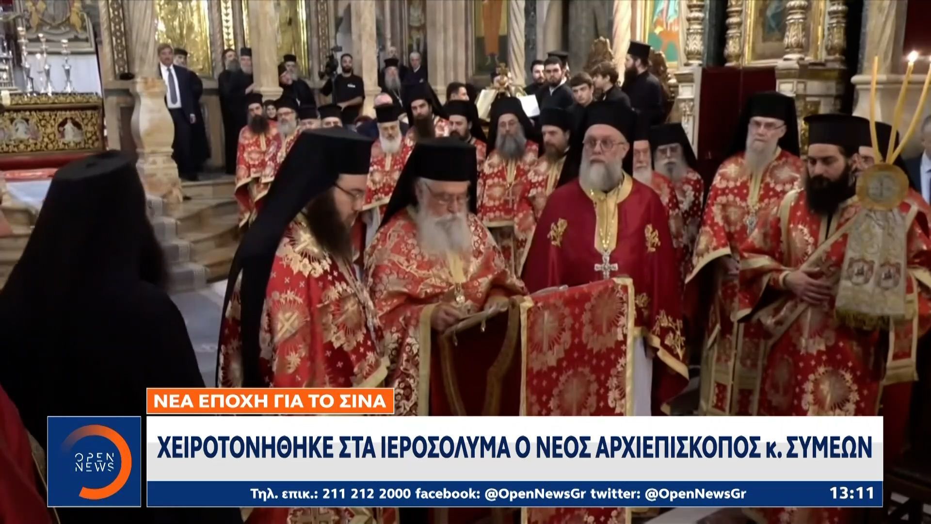 Στον Πανάγιο Τάφο στα Ιεροσόλυμα πραγματοποιήθηκε η χειροτονία του νέου Αρχιεπισκόπου Σινά, κ. Συμεών, με την παρουσία του Πατριάρχη Ιεροσολύμων Θεοφίλου και εκπροσώπων της ελληνικής κυβέρνησης. Ο κ. Συμεών, ο οποίος διαδέχεται τον Αρχιεπίσκοπο Δαμιανό μετά από πενήντα δύο χρόνια, εξέφρασε την ταπεινότητα και την ελπίδα του για την πνευματική πορεία της Μονής της Αγίας Αικατερίνης.