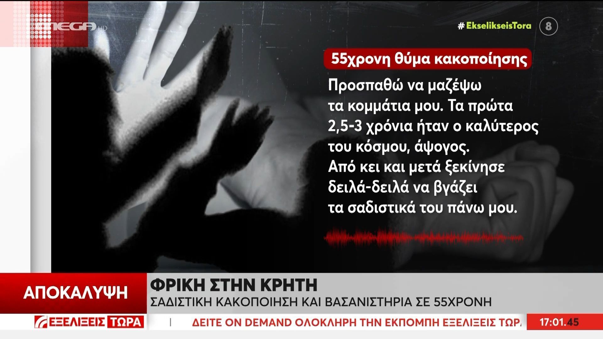 Μια 55χρονη γυναίκα στην Κρήτη προχώρησε σε καταγγελία κατά του πρώην συντρόφου της, περιγράφοντας σοκαριστικές λεπτομέρειες για τη σαδιστική κακοποίηση που υπέστη. Τα τραύματά της περιλαμβάνουν καρούμπαλα και αιματώματα στο κεφάλι, ενώ εκφράζει τον φόβο της για πιθανή επιστροφή του δράστη στην ελευθερία.