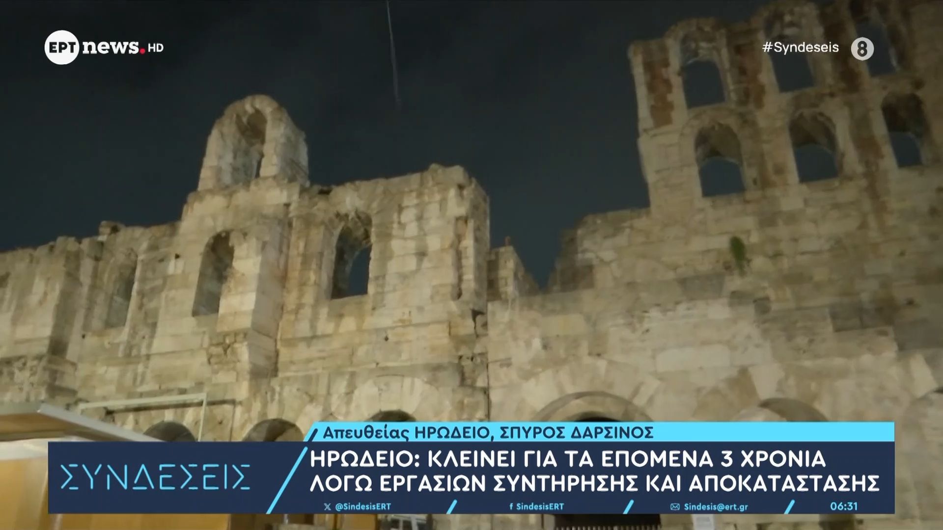 Το Ηρώδειο θα παραμείνει κλειστό για τα επόμενα τρία χρόνια προκειμένου να πραγματοποιηθούν απαραίτητες εργασίες συντήρησης και αποκατάστασης. Οι εργασίες αυτές κρίνονται επιτακτικές για τη διασφάλιση της ασφάλειας και της βιωσιμότητας του ιστορικού μνημείου, το οποίο φιλοξενεί σημαντικές πολιτιστικές εκδηλώσεις.