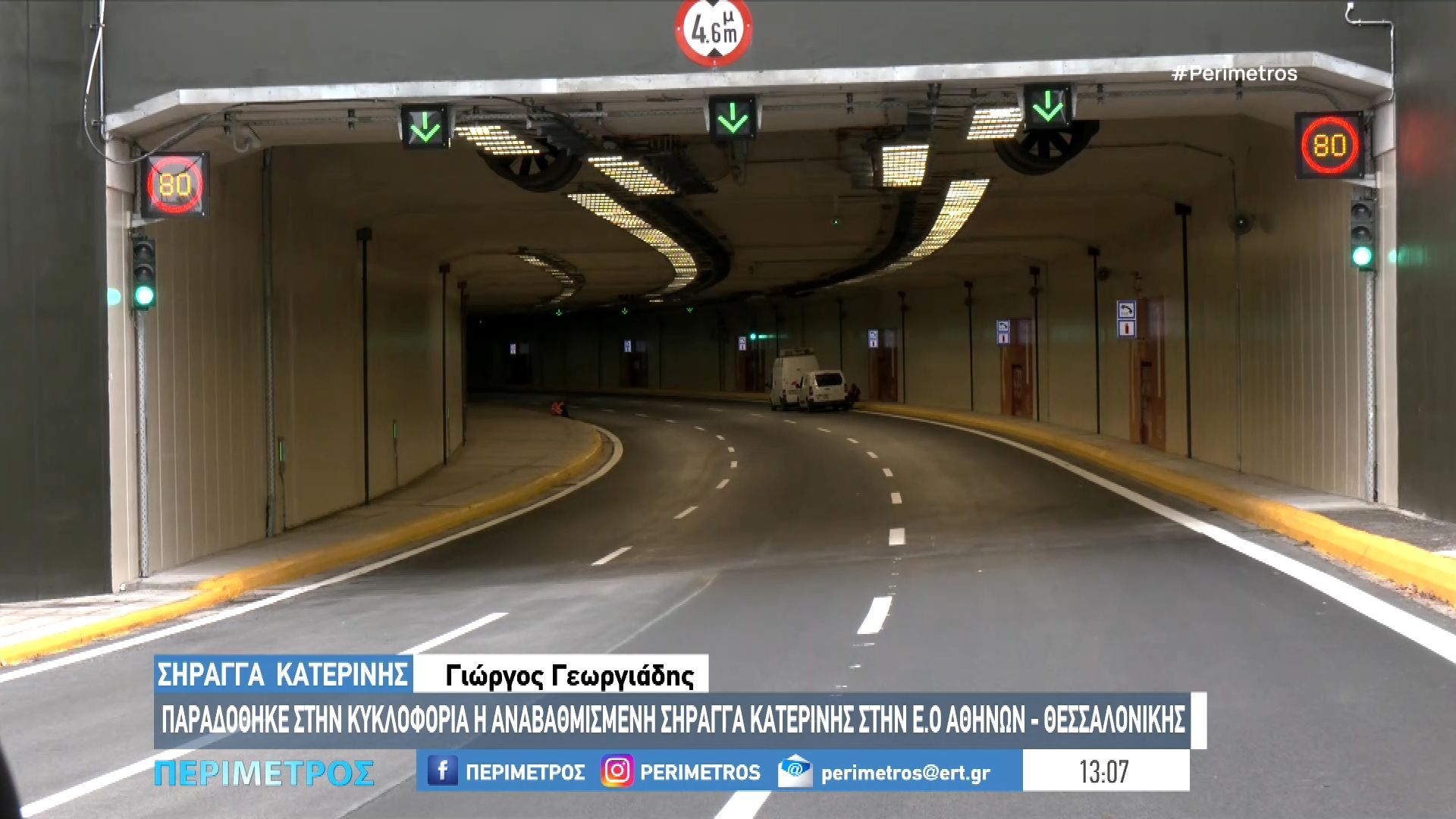 Σήμερα το απόγευμα θα παραδοθεί στην κυκλοφορία η αναβαθμισμένη σήραγγα Κατερίνης, έπειτα από εργασίες που κόστισαν 27 εκατομμύρια ευρώ. Ο υφυπουργός Υποδομών, Νίκος Ταχιάος, επισκέφθηκε το έργο, το οποίο εκσυγχρονίστηκε σύμφωνα με τις ευρωπαϊκές οδηγίες για τη βελτίωση της πυρασφάλειας και της τηλεματικής επιτήρησης.