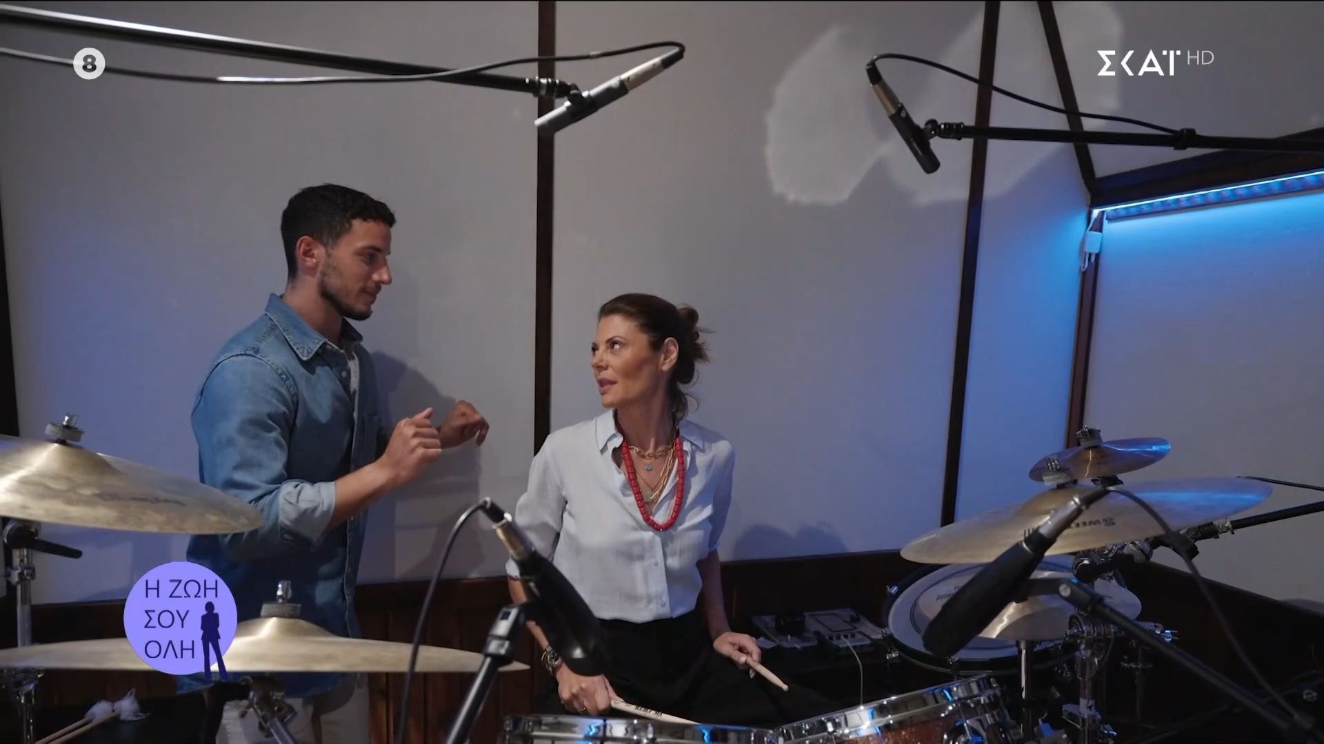 Ο Άγγελος Πεντάρης μαθαίνει ντραμς την Χριστίνα Βίδου