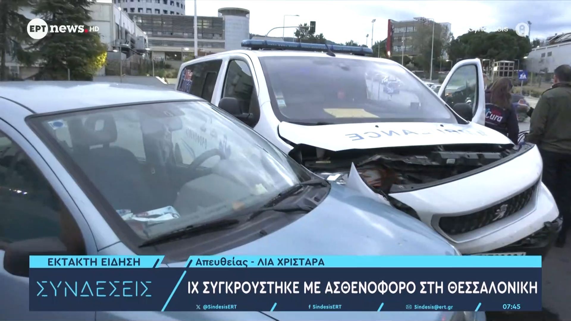 Στη Θεσσαλονίκη σημειώθηκε σοβαρό τροχαίο ατύχημα όταν ΙΧ αυτοκίνητο συγκρούστηκε με ασθενοφόρο. Οι πρώτες πληροφορίες αναφέρουν ότι ο οδηγός του ΙΧ προσπάθησε να παρακάμψει ένα κόκκινο φανάρι, με αποτέλεσμα τη σύγκρουση που προκάλεσε αναστάτωση στην κυκλοφορία της περιοχής.