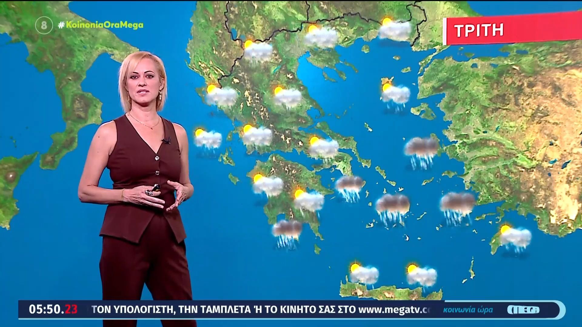 Σήμερα, Τρίτη, αναμένονται βροχές κυρίως στα νότια της χώρας, με πιθανές καταιγίδες σε ορισμένες περιοχές. Οι άνεμοι θα πνέουν μέτριοι, ενώ η θερμοκρασία θα κυμαίνεται σε φυσιολογικά επίπεδα για την εποχή.