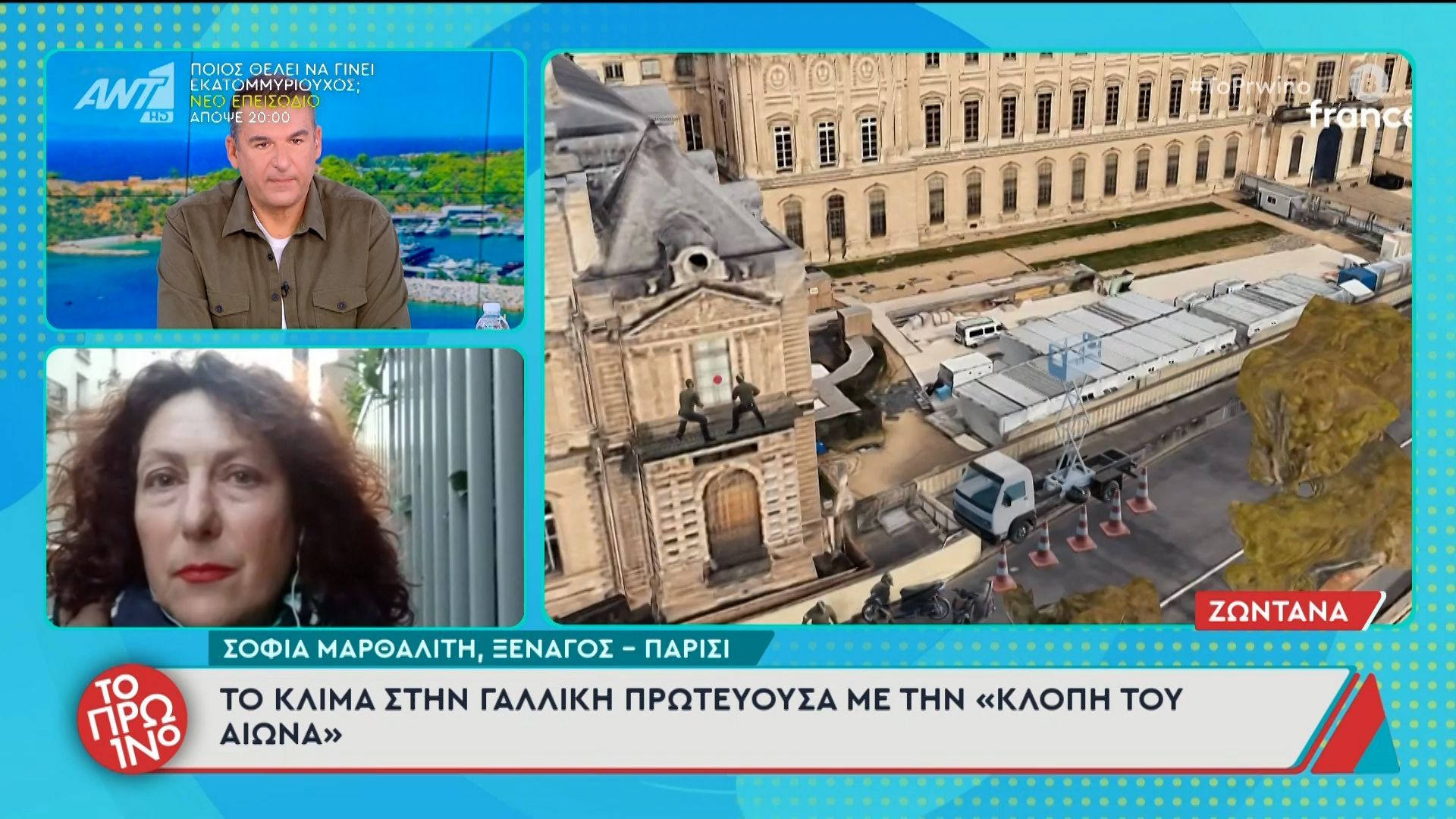 Η Σοφία Μαρθαλίτη, ξεναγός στο Παρίσι, αναλύει τις πρόσφατες εξελίξεις γύρω από την «κλοπή του αιώνα» που συγκλονίζει την γαλλική πρωτεύουσα. Με φόντο την αβεβαιότητα που έχει προκαλέσει το γεγονός, οι κάτοικοι της πόλης εκφράζουν την ανησυχία τους για την ασφάλεια και την εικόνα της Γαλλίας στο εξωτερικό.