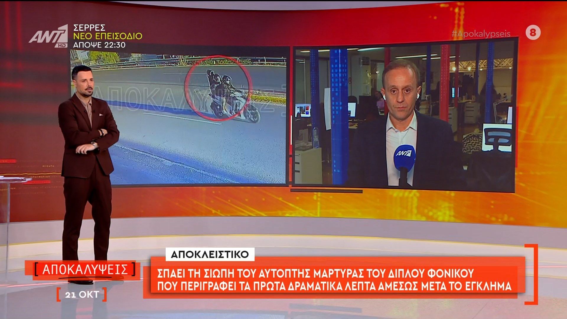 Ένας αυτόπτης μάρτυρας του διπλού φονικού αποκαλύπτει τις δραματικές στιγμές που εκτυλίχθηκαν αμέσως μετά το έγκλημα. Περιγράφει τις σκηνές πανικού και την αναστάτωση που επικράτησε στην περιοχή, με τους κατοίκους να προσπαθούν να κατανοήσουν τι έχει συμβεί.