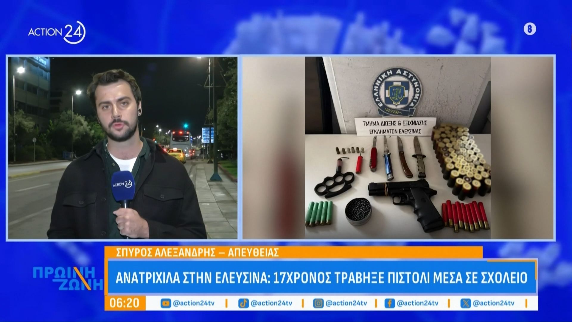 Συναγερμός σήμανε στην Ελευσίνα όταν 18χρονος μαθητής εισήλθε σε σχολείο κρατώντας πιστόλι. Η αστυνομία έσπευσε στο σημείο και οι αρχές προχώρησαν στην ασφαλή απομάκρυνση των μαθητών και του εκπαιδευτικού προσωπικού.