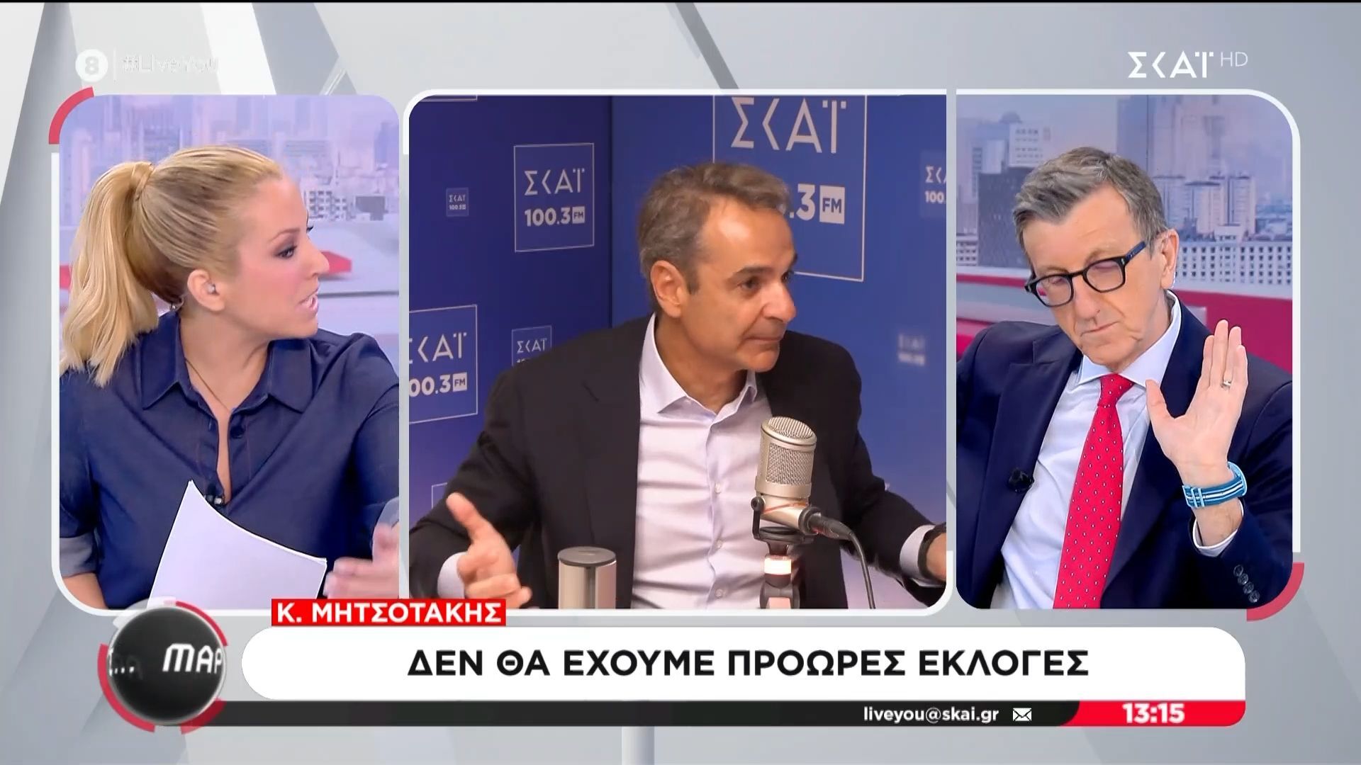 Ο Πρωθυπουργός, Κυριάκος Μητσοτάκης, διαβεβαίωσε ότι δεν υπάρχει πρόθεση για πρόωρες εκλογές, τονίζοντας τη σταθερότητα της κυβέρνησης. Σε συνέντευξή του, επεσήμανε την ανάγκη συνέχειας στη διακυβέρνηση και την υλοποίηση των μεταρρυθμίσεων που έχουν προγραμματιστεί.