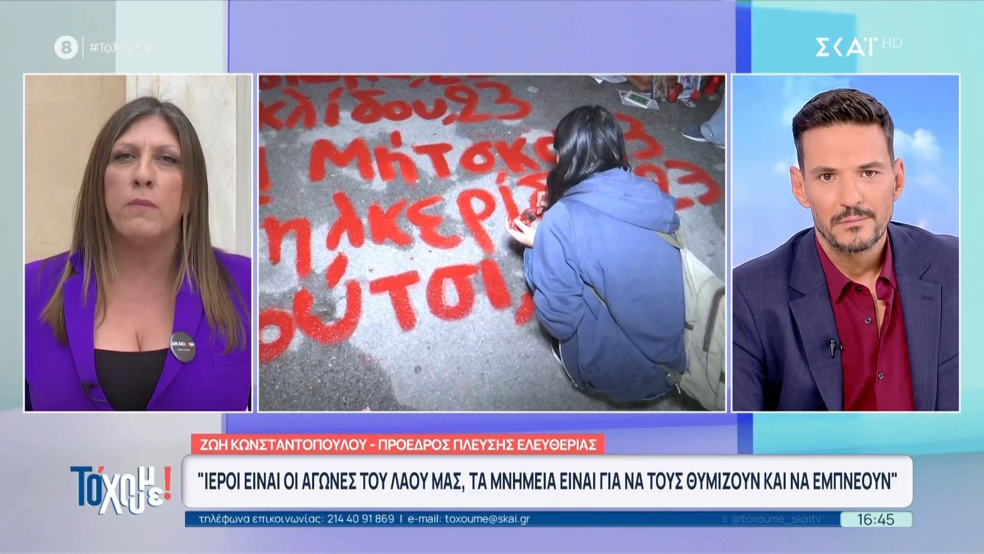 Η Ζωή Κωνσταντοπούλου, πρόεδρος της Πλεύσης Ελευθερίας, κατήγγειλε στη...