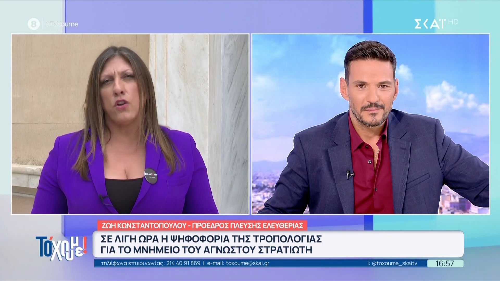 Η Ζωής Κωνσταντοπούλου απάντησε στις αντιδράσεις που προκλήθηκαν από την αποχώρησή της από το στούντιο του ΣΚΑΪ. Σε δήλωσή της, τόνισε ότι δεν αντιδρά σε ερωτήσεις, αλλά στην προπαγάνδα και τον αποπροσανατολισμό που παρατηρεί στα μέσα.