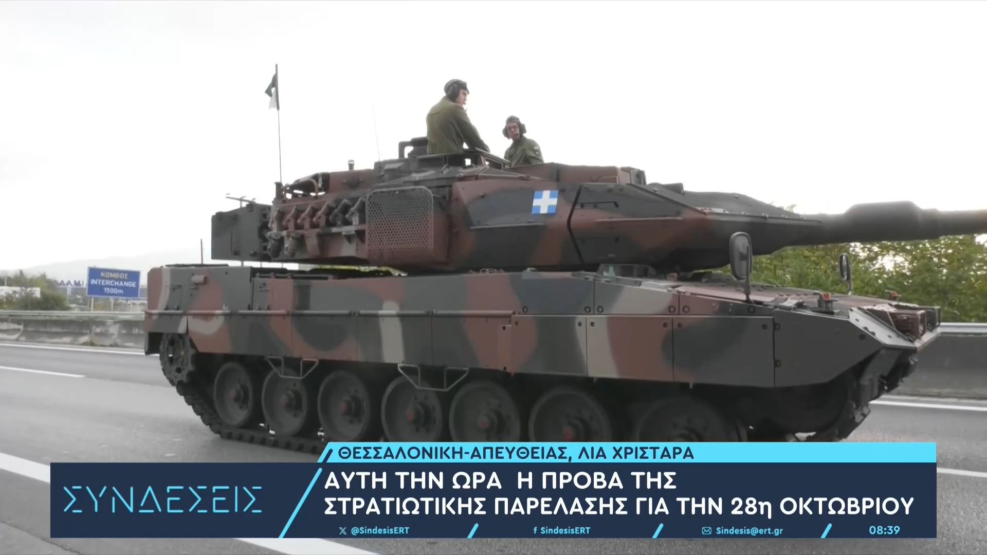 Σήμερα, στη Θεσσαλονίκη, πραγματοποιείται η δοκιμαστική στρατιωτική παρέλαση για την εθνική εορτή της 28ης Οκτωβρίου. Τα μηχανοκίνητα οχήματα έχουν ήδη τοποθετηθεί και η πρόβα αναμένεται να διαρκέσει μέχρι το μεσημέρι, με την κυκλοφορία στην εθνική οδό Θεσσαλονίκης-Μουδανιών να έχει διακοπεί.
