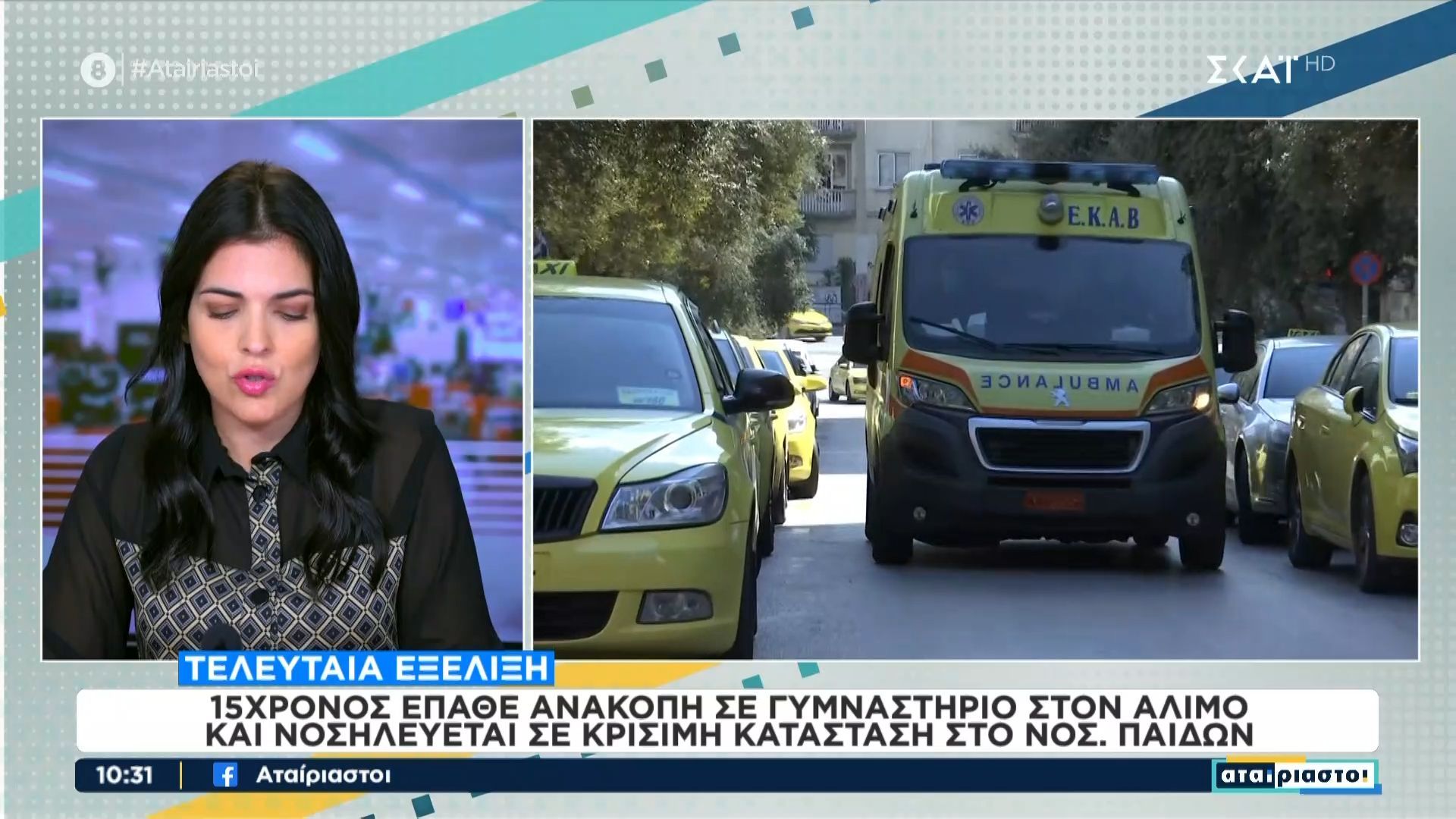 Ένας 15χρονος υπέστη ανακοπή καρδιάς κατά τη διάρκεια προπόνησης σε γυμναστήριο στον Άλιμο, προκαλώντας σοκ στους παρευρισκόμενους. Άμεσα μεταφέρθηκε στο Νοσοκομείο Παίδων, όπου νοσηλεύεται σε κρίσιμη κατάσταση.