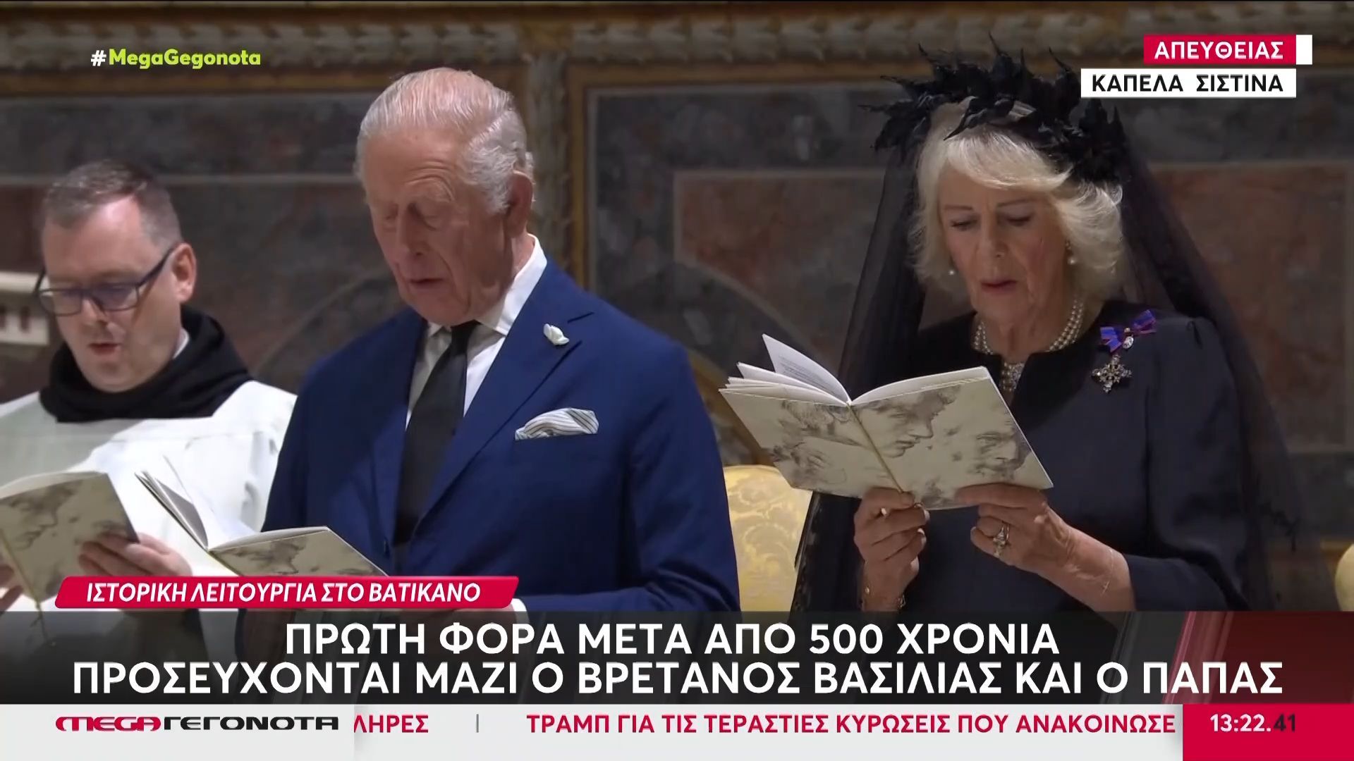 Στη διάρκεια μιας ιστορικής λειτουργίας που πραγματοποιήθηκε στην Καπέλα Σιστίνα, ο Βρετανός Βασιλιάς και ο Πάπας προσευχήθηκαν μαζί για πρώτη φορά μετά από 500 χρόνια. Η συνάντηση αυτή σηματοδοτεί μια σημαντική στιγμή στην ιστορία των σχέσεων μεταξύ της Αγγλικανικής Εκκλησίας και της Ρωμαιοκαθολικής Εκκλησίας.