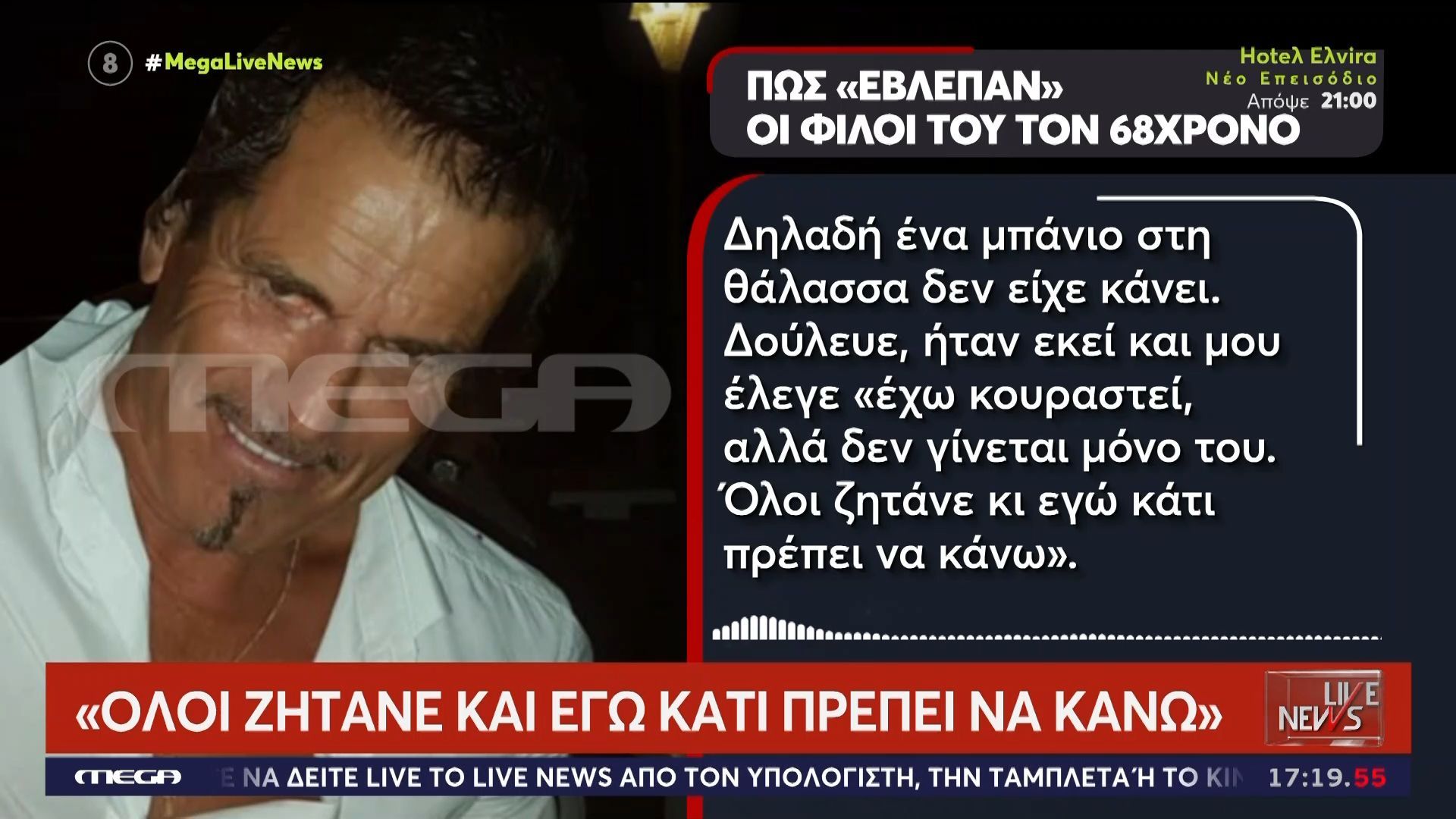 Ο επιστήθιος φίλος του 68χρονου ιδιοκτήτη κάμπινγκ αποκαλύπτει λεπτομέρειες για τη ζωή και τον χαρακτήρα του θύματος, αναφέροντας τις τελευταίες στιγμές πριν το τραγικό συμβάν. Η μαρτυρία του προσφέρει μια πιο προσωπική εικόνα της κατάστασης και της σχέσης τους, αποκαλύπτοντας τις ανησυχίες του για την ασφάλεια στην περιοχή.