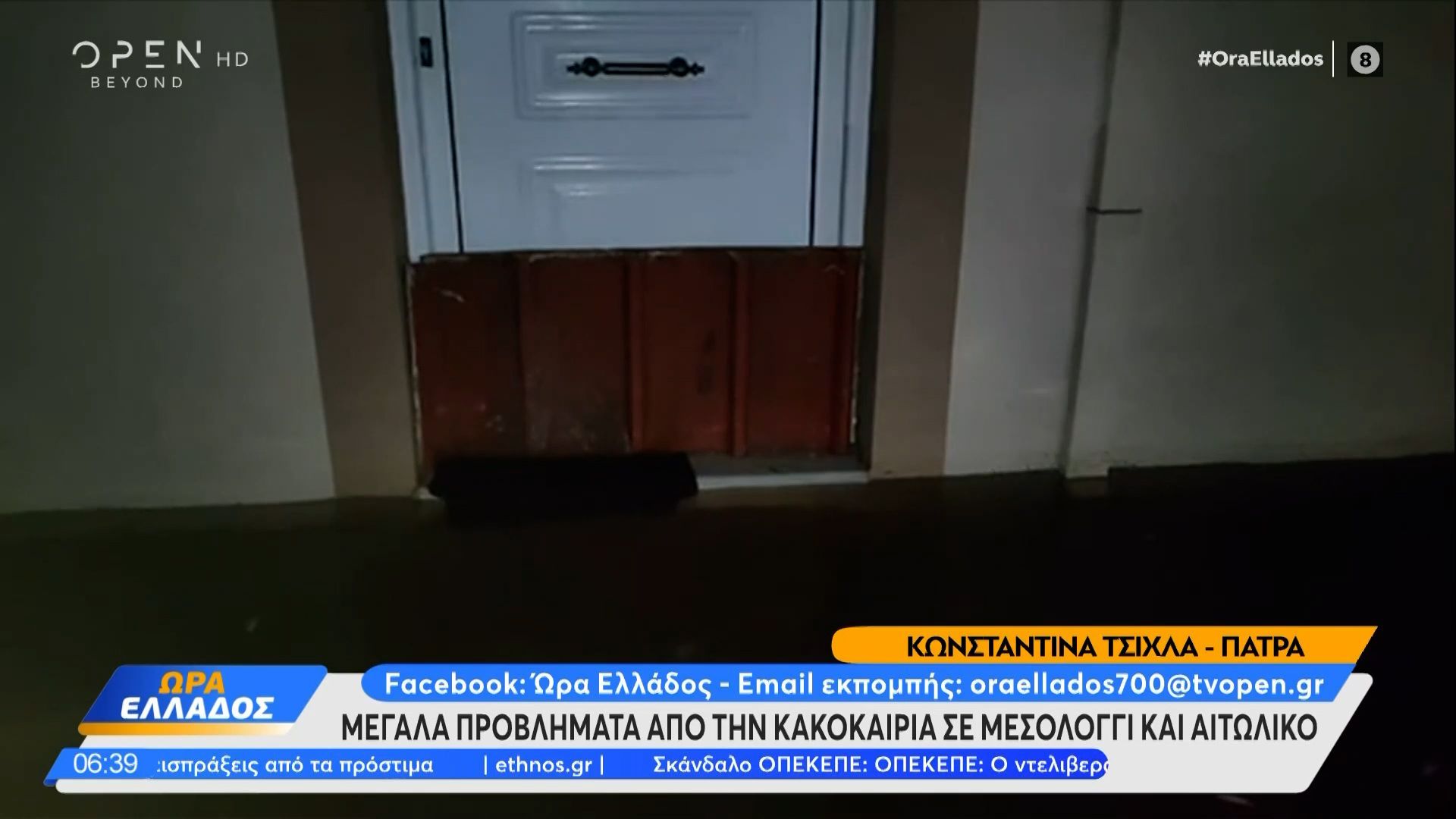 Η κακοκαιρία που πλήττει τη Δυτική Ελλάδα προκαλεί σοβαρές πλημμύρες σε περιοχές όπως το Μεσολόγγι και το Αιτωλικό. Οι ισχυρές βροχοπτώσεις έχουν οδηγήσει σε εκτεταμένες ζημιές σε υποδομές και σπίτια, ενώ οι αρχές προειδοποιούν τους πολίτες να είναι σε επιφυλακή.