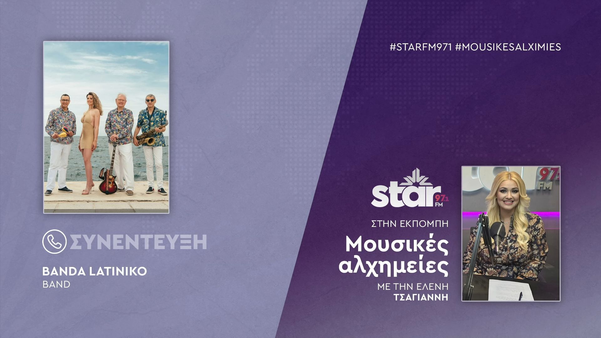 Η Banda Latiniko, ένα από τα πιο αναγνωρίσιμα συγκροτήματα της ελληνικής Latin σκηνής, πραγματοποιεί μια ξεχωριστή εμφάνιση στον STARFM. Οι καλλιτέχνες μοιράζονται τις μουσικές τους επιρροές και αναλύουν τη σημασία της παράδοσης στη σύγχρονη μουσική τους δημιουργία.