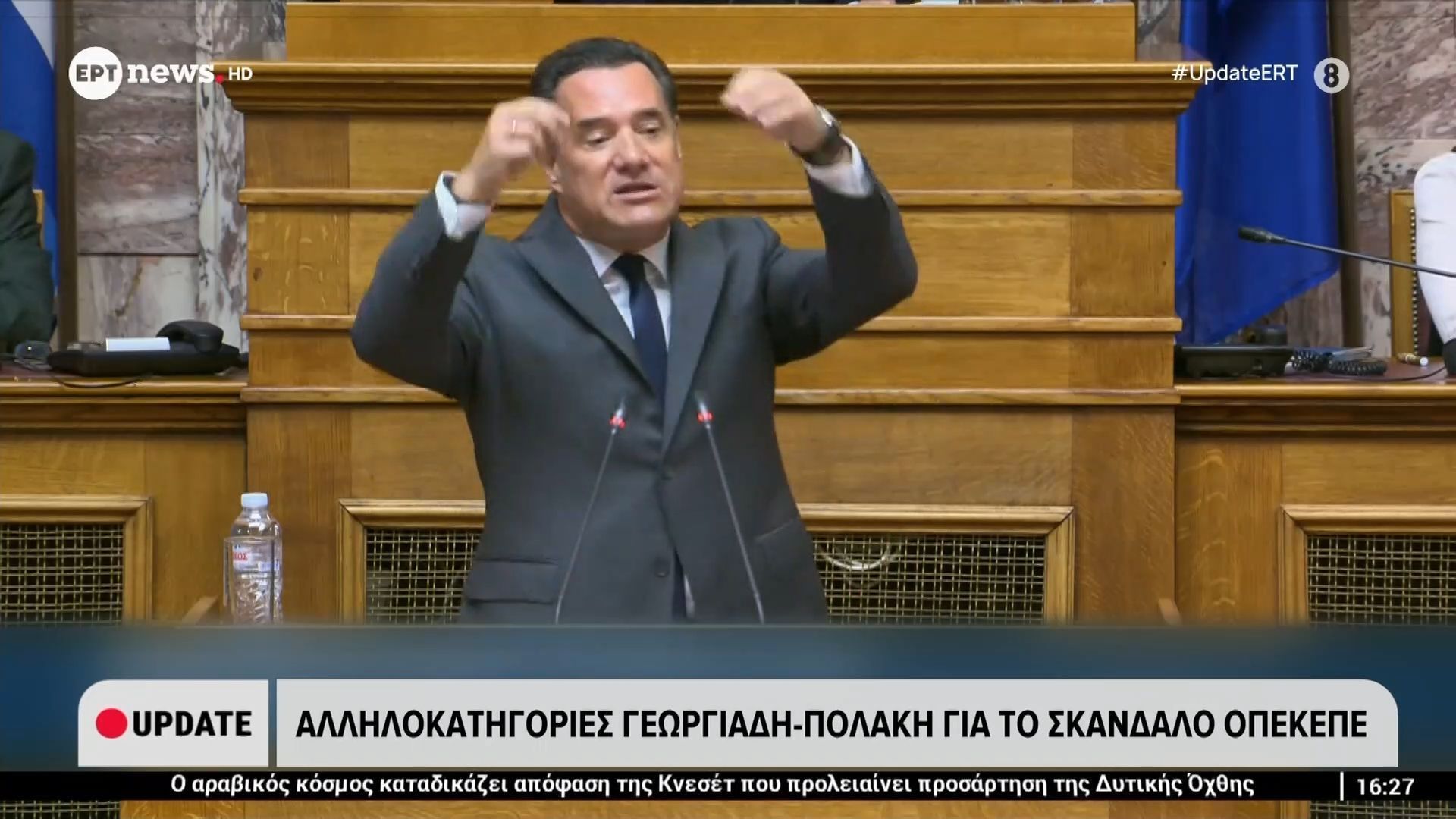 Έντονη αντιπαράθεση ξέσπασε στη Βουλή μεταξύ του Υπουργού Υγείας και του βουλευτή του ΣΥΡΙΖΑ, με αφορμή το σκάνδαλο που αφορά τον ΟΠΕΚΕΠΕ. Οι δύο πολιτικοί αντάλλαξαν κατηγορίες, με τον Πολάκη να επικρίνει τη διαχείριση του υπουργείου και τον Γεωργιάδη να υπερασπίζεται τις πολιτικές του.