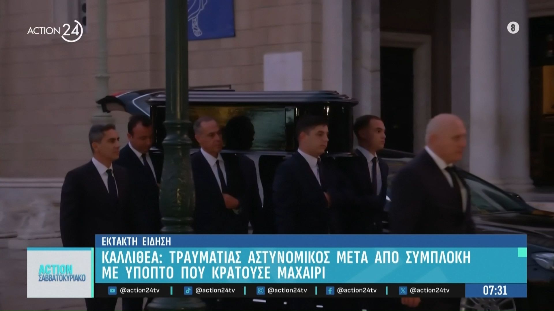 Η σορός του Διονύση Σαββόπουλου έχει τοποθετηθεί στο παρεκκλήσι της Μητροπόλεως, όπου πλήθος κόσμου έχει συγκεντρωθεί για να αποτίσει φόρο τιμής στον εμβληματικό καλλιτέχνη. Η κηδεία του προγραμματίζεται για τις επόμενες ημέρες, με την οικογένεια και τους φίλους του να εκφράζουν τη θλίψη τους για την απώλεια.