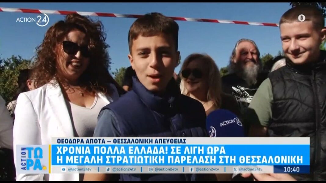 Παιδιά από διάφορες περιοχές της Θεσσαλονίκης συγκεντρώθηκαν για να παρακολουθήσουν τη στρατιωτική παρέλαση που πραγματοποιήθηκε σήμερα. Με ενθουσιασμό, οι μικροί θεατές παρακολούθησαν τα στρατεύματα και τον εξοπλισμό, ενώ οι γονείς τους κατέγραφαν τις στιγμές με φωτογραφίες.
