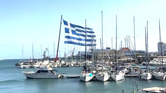 Γιγαντιαία ελληνική σημαία 1.440 τ.μ. υψώθηκε στο λιμάνι του Ηρακλείου για την 28η Οκτωβρίου