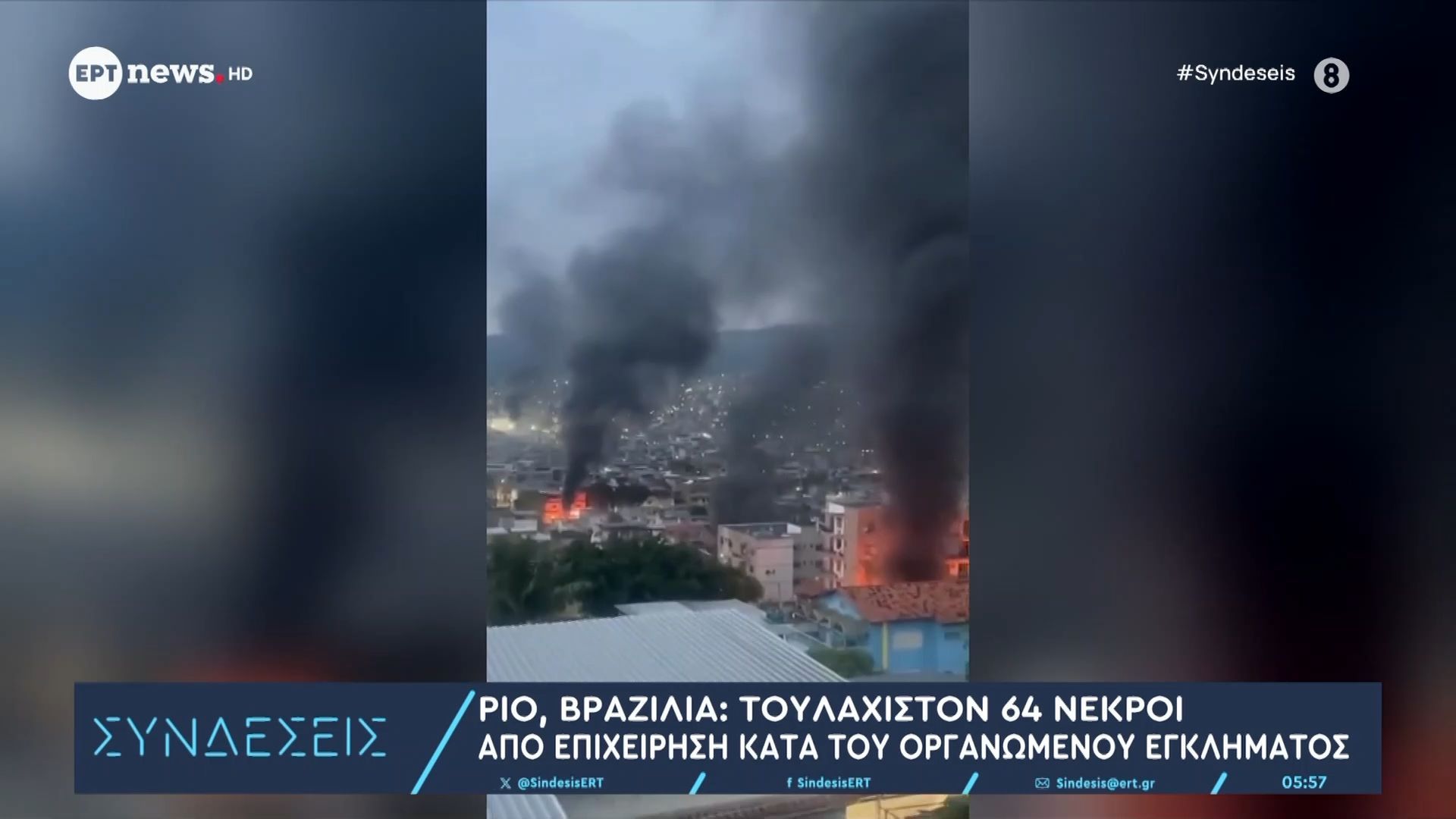 Μια μεγάλη επιχείρηση κατά του οργανωμένου εγκλήματος στη Ρίο ντε Τζανέιρο οδήγησε στον θάνατο τουλάχιστον 64 ατόμων. Οι αρχές πραγματοποίησαν συντονισμένες επιδρομές στις φτωχογειτονιές της πόλης, προκειμένου να καταπολεμήσουν τη δράση εγκληματικών συμμοριών που δρουν στην περιοχή.